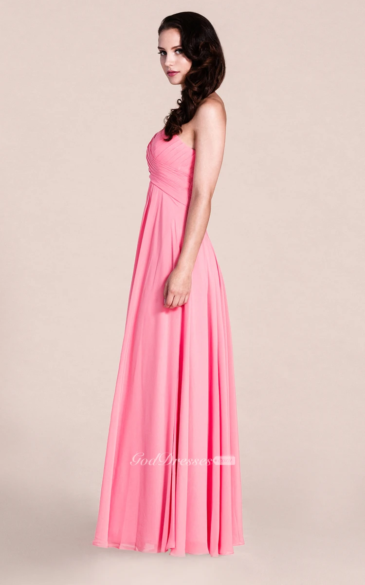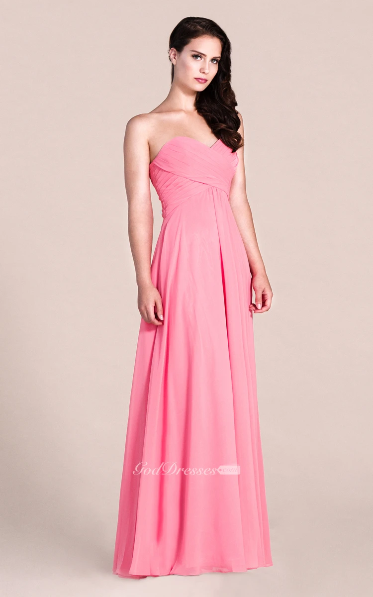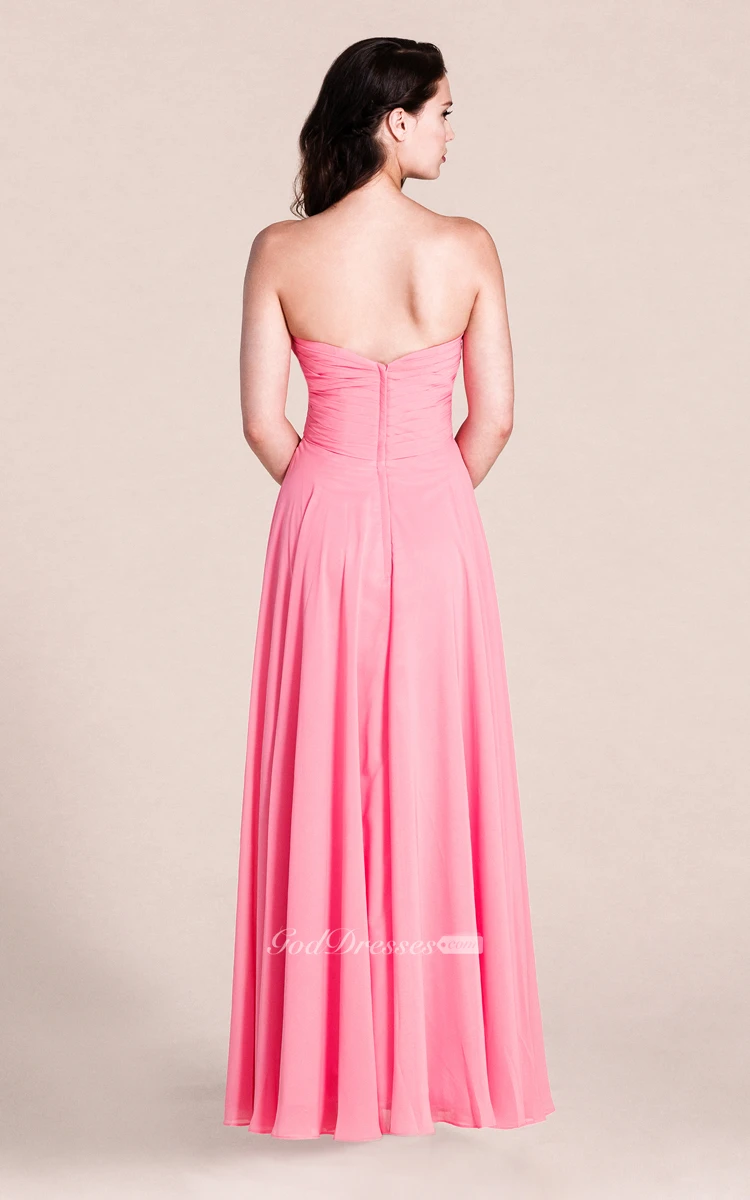This is the perfect bridesmaid dress with high quality chiffon and beautiful colors. The pleated bodice and strapless style is just perfect for any shape of body.