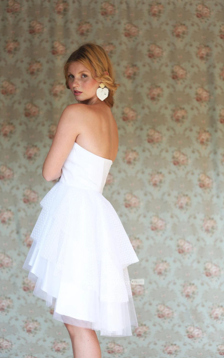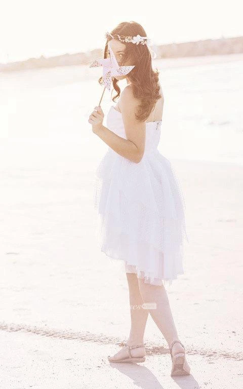 Simple Tiered Tulle High-Low Strapless A-Line Dress With Ruffles
