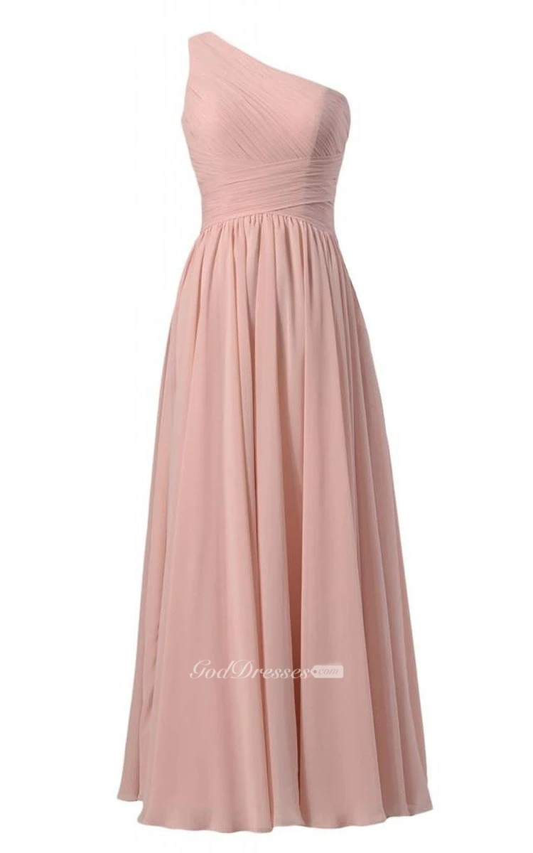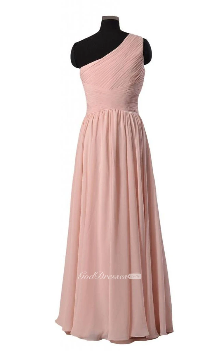 Simplistic Long One-shoulder Pleated Chiffon A-line Dress