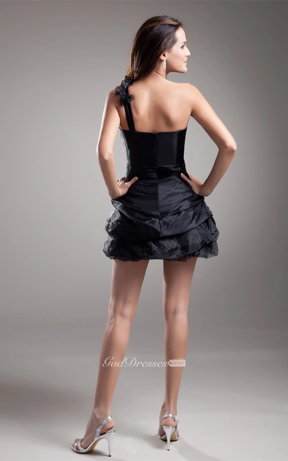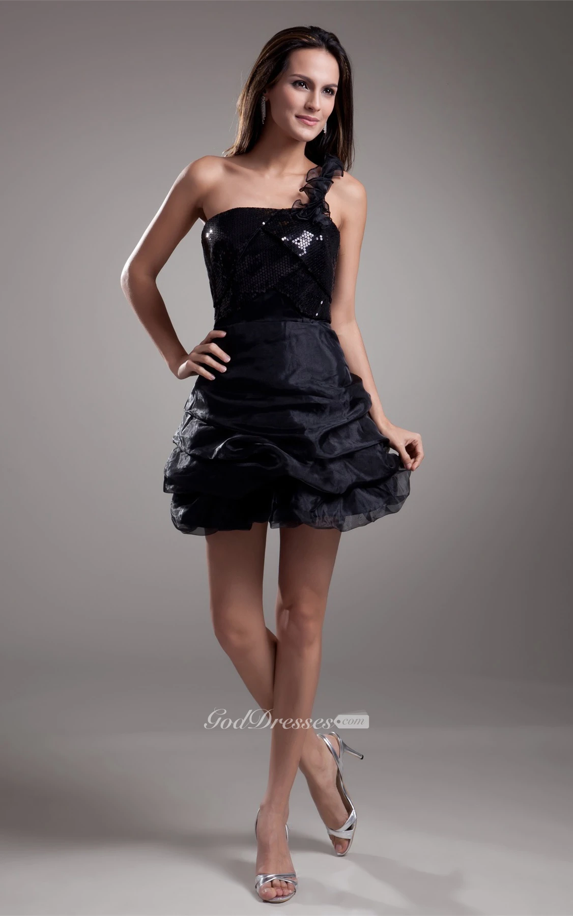 Single-Strap Mini A-Line Pick-Up Dress With Sequined Top