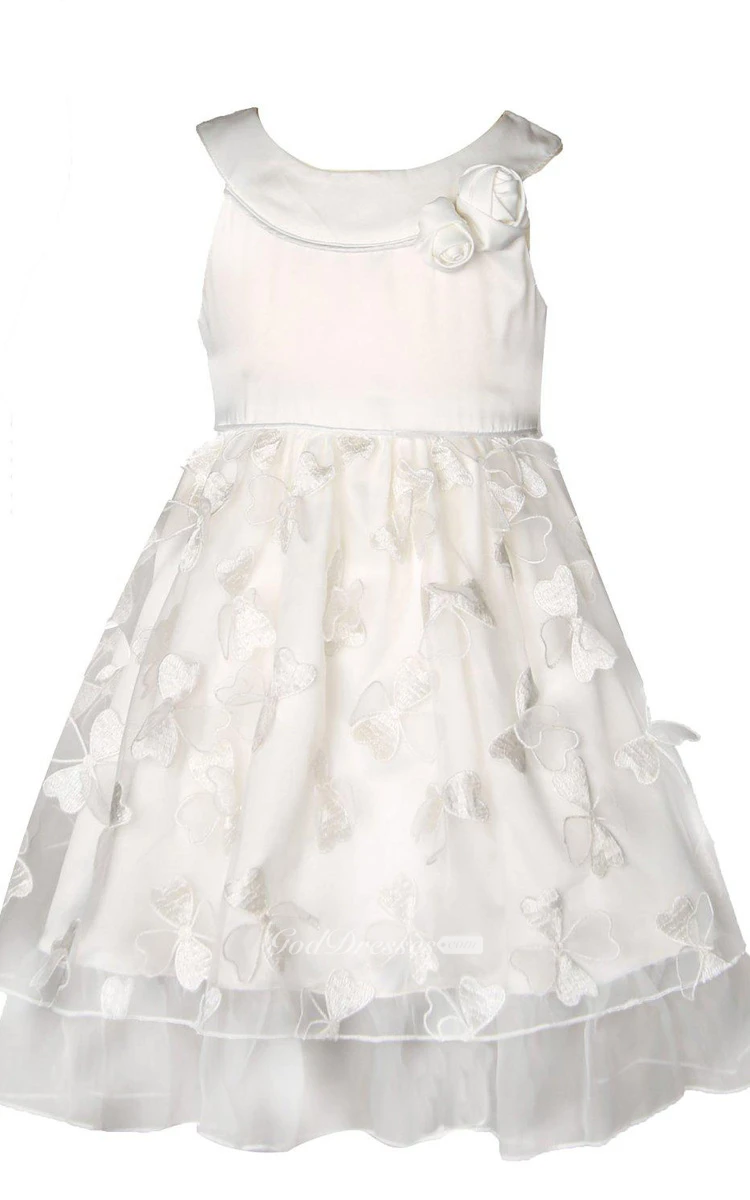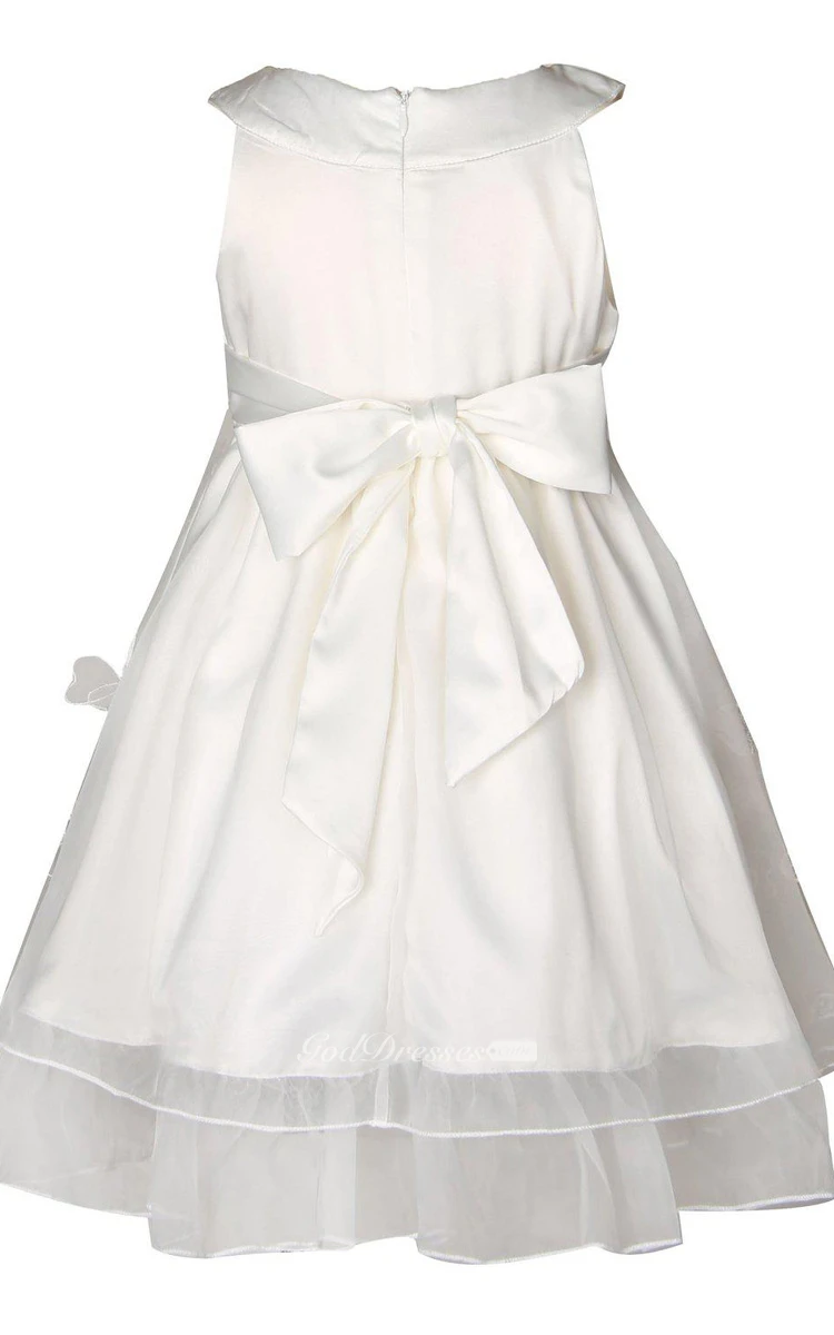 Sleeveless A-line Appliqued Dress With Bow and Pleats