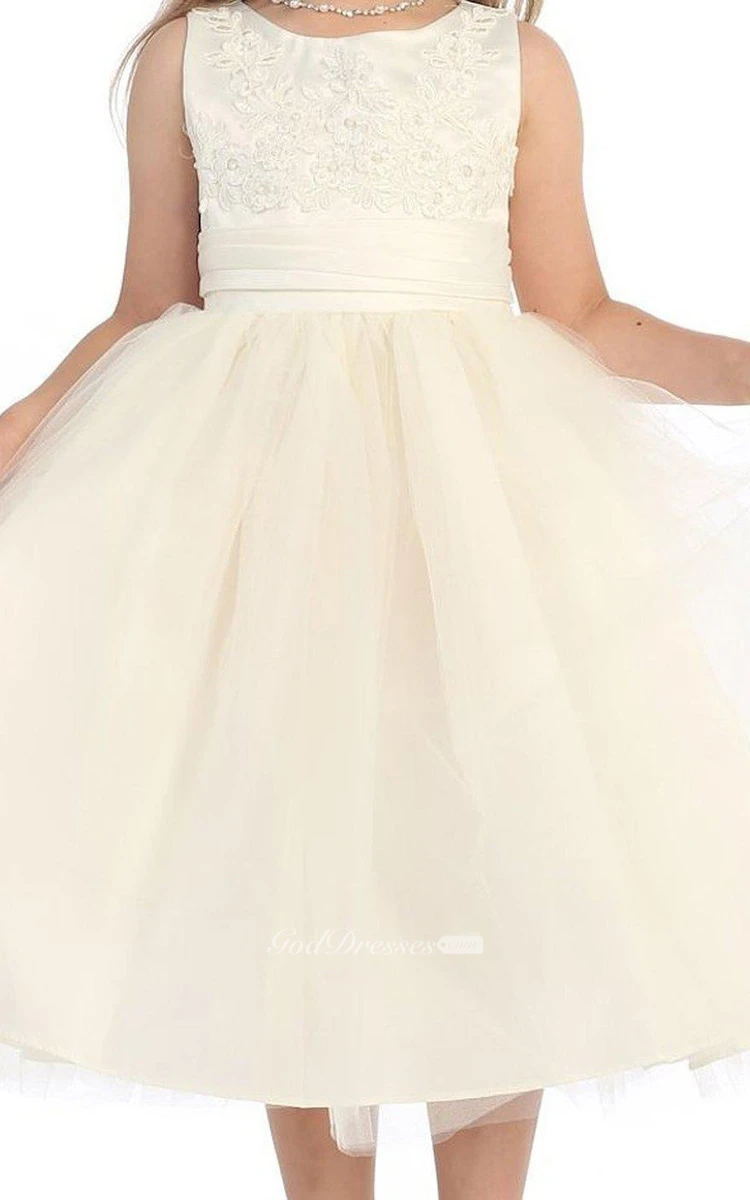 Sleeveless A-line Appliqued Dress With Pleats