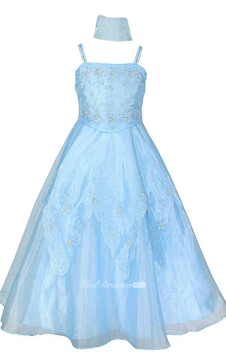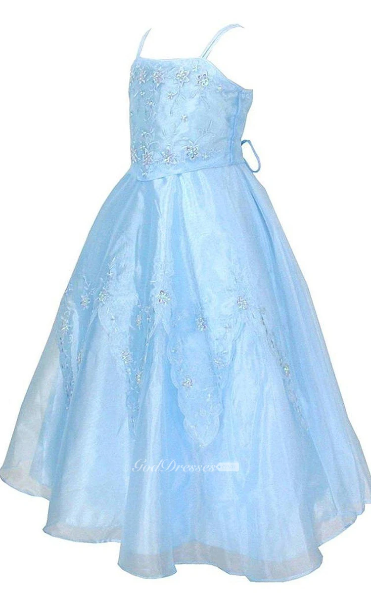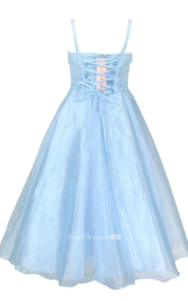 Sleeveless A-line Appliqued Dress With Spaghetti Straps