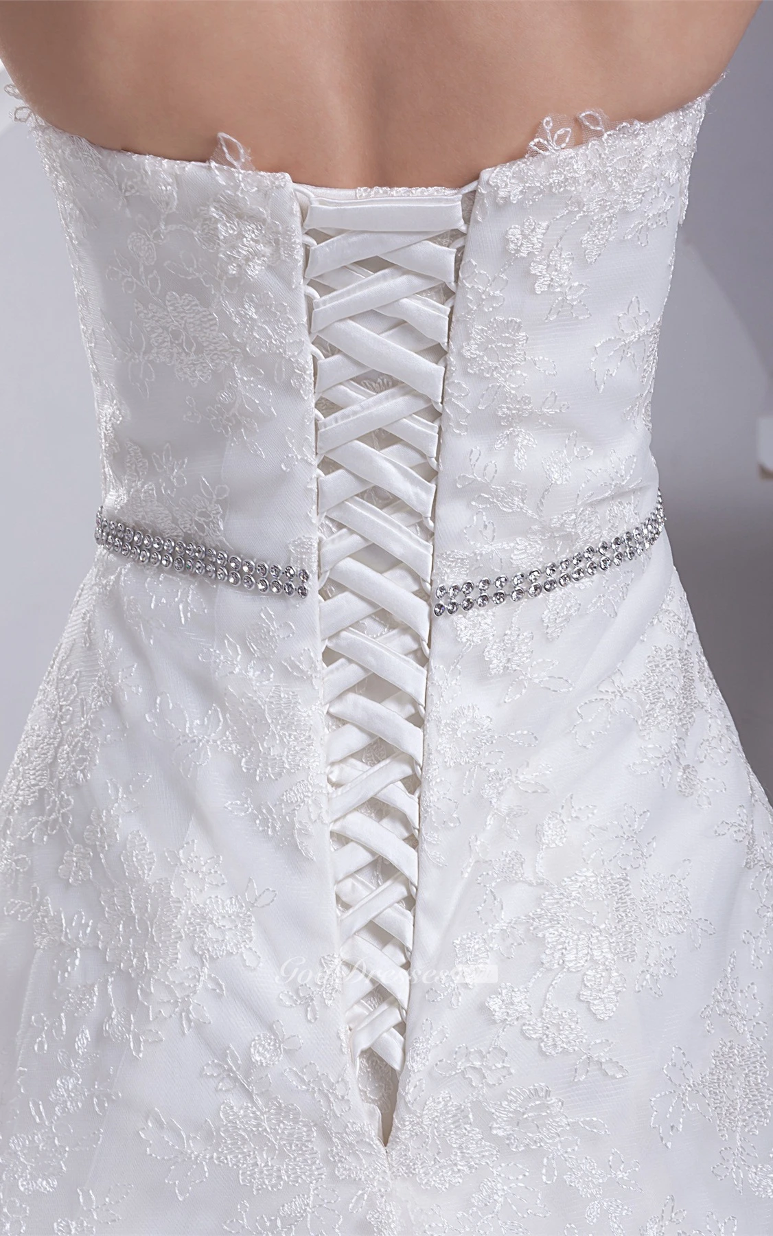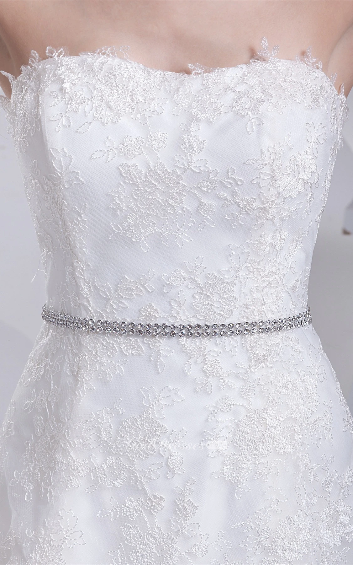 Sleeveless A-Line Appliqued Gown With Jeweled Waist