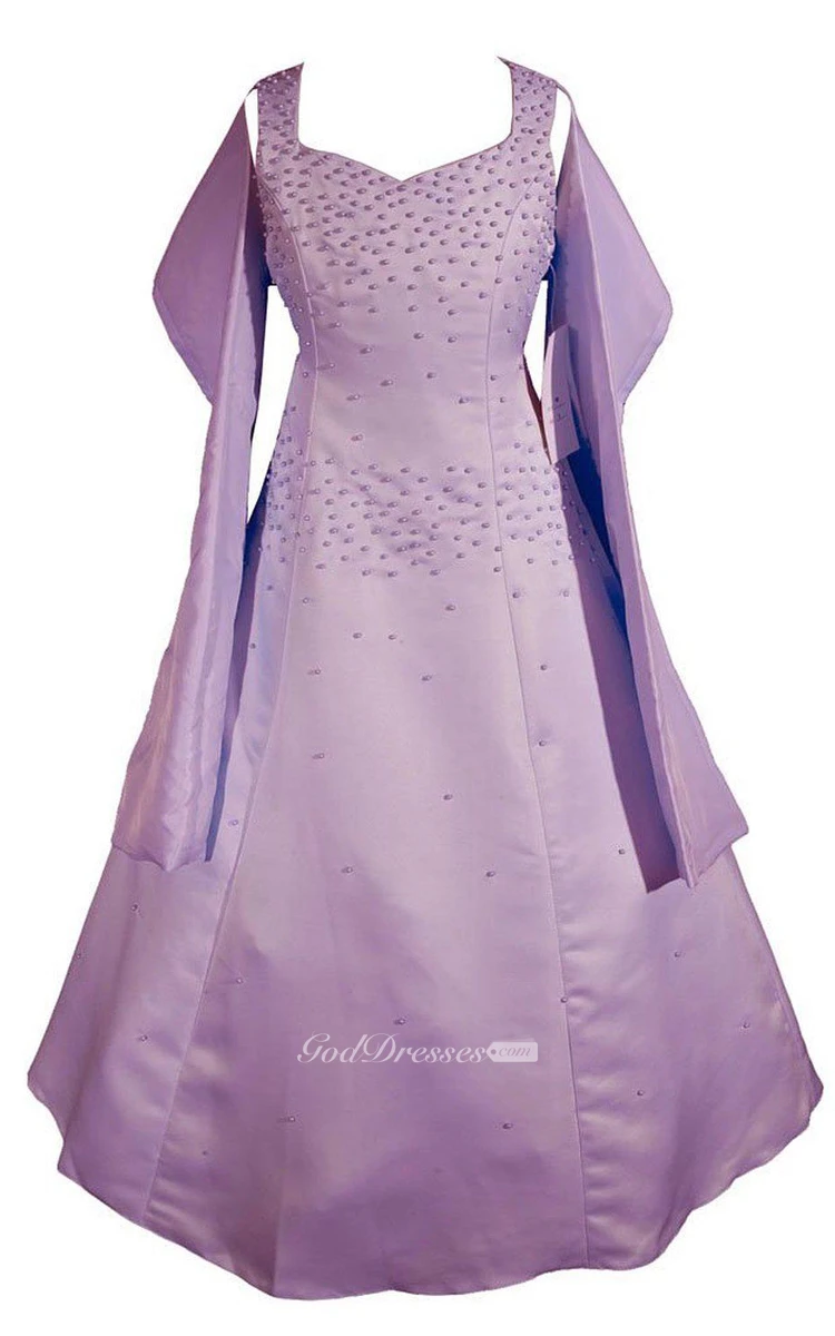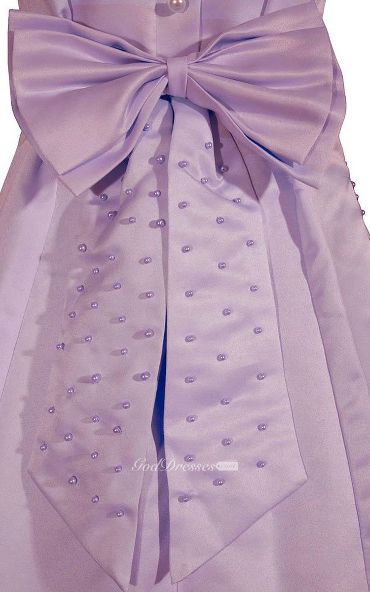 Sleeveless A-line Beaded Dress With Bow and Detachable Jacket