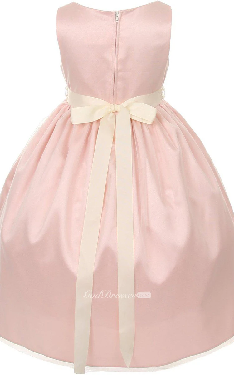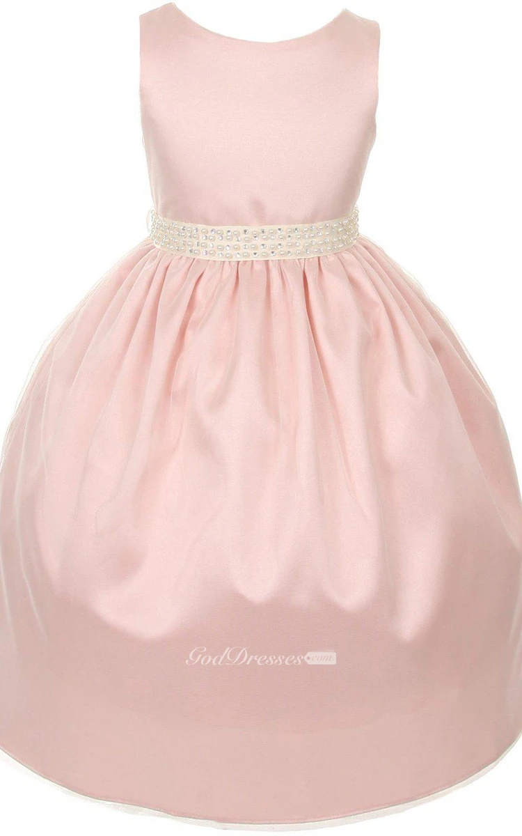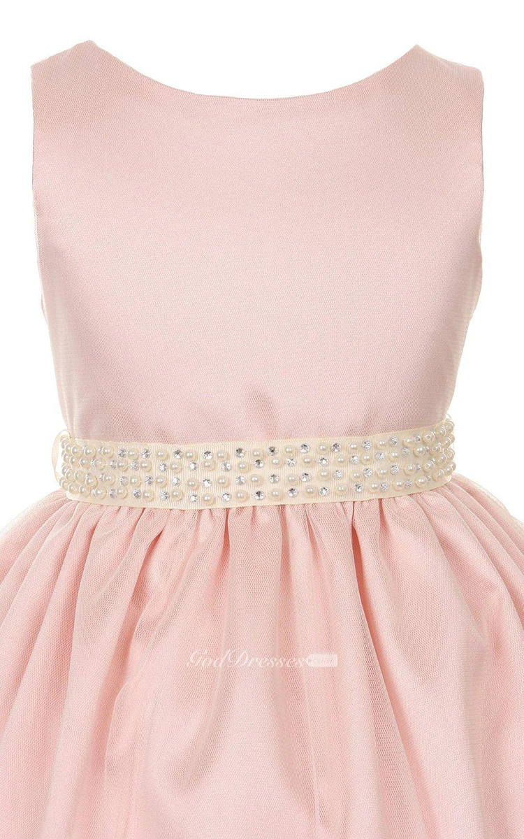 Sleeveless A-line Beaded Dress With Pleats and Bow