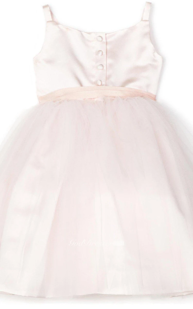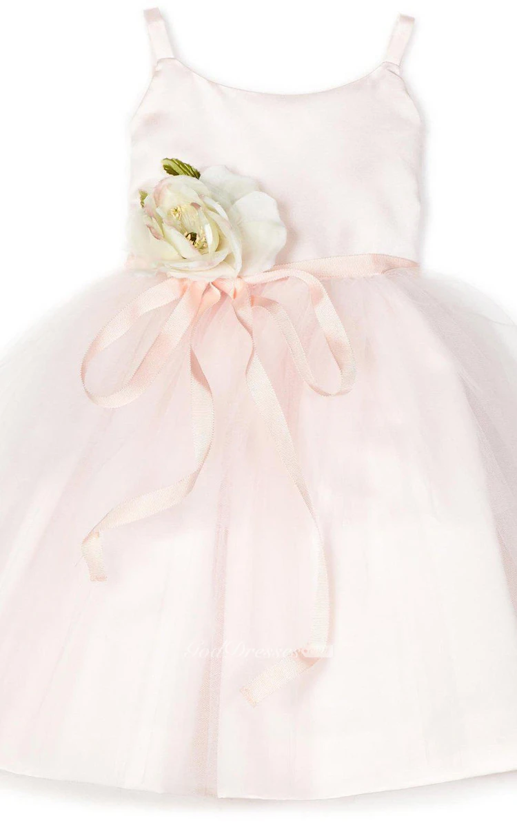 Sleeveless A-line Bowed Dress With Flower and Spaghetti Straps