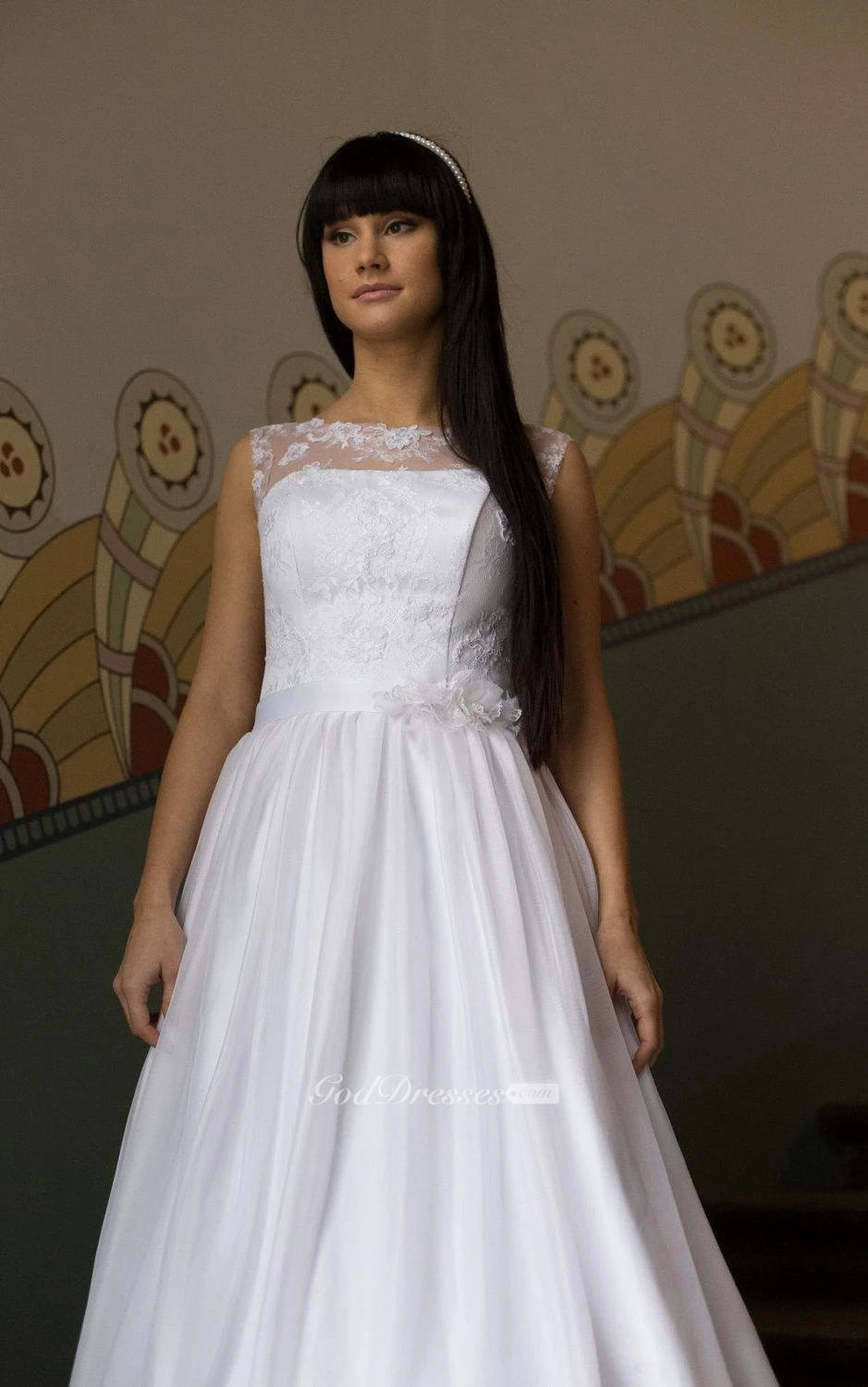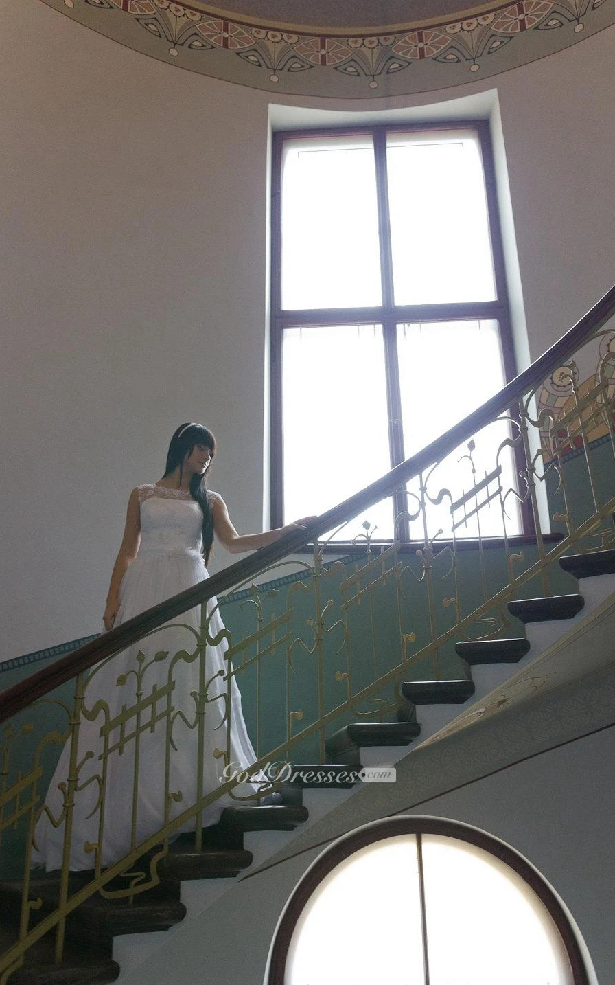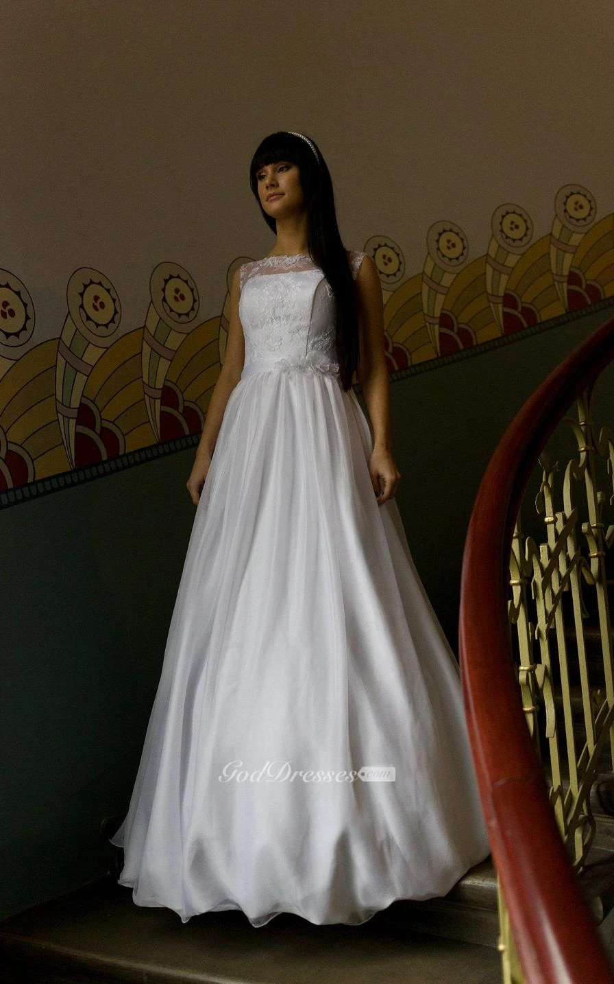 Sleeveless A-Line Bridal Dress With Jewel Neck and Keyhole Back