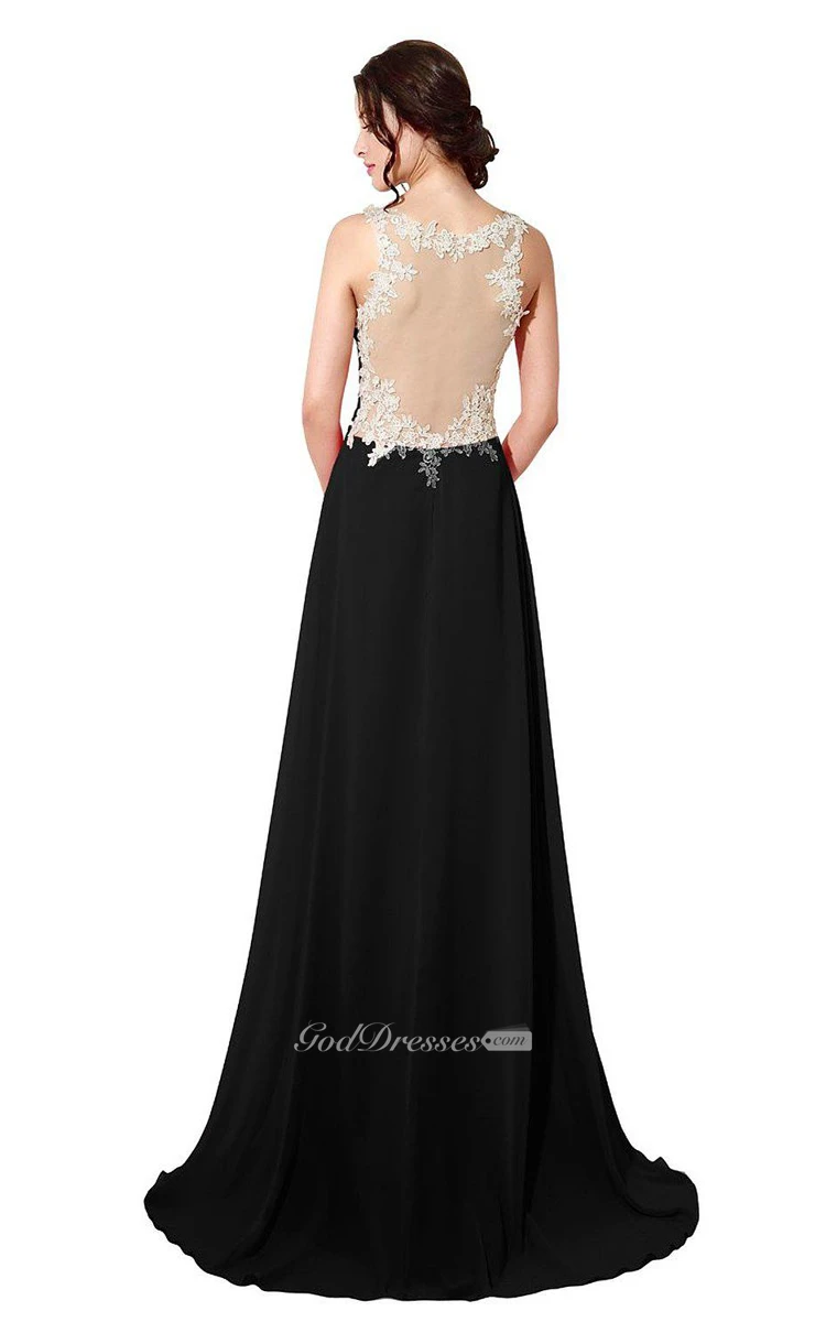 Sleeveless A-line Chiffon Dress With Illusion Back
