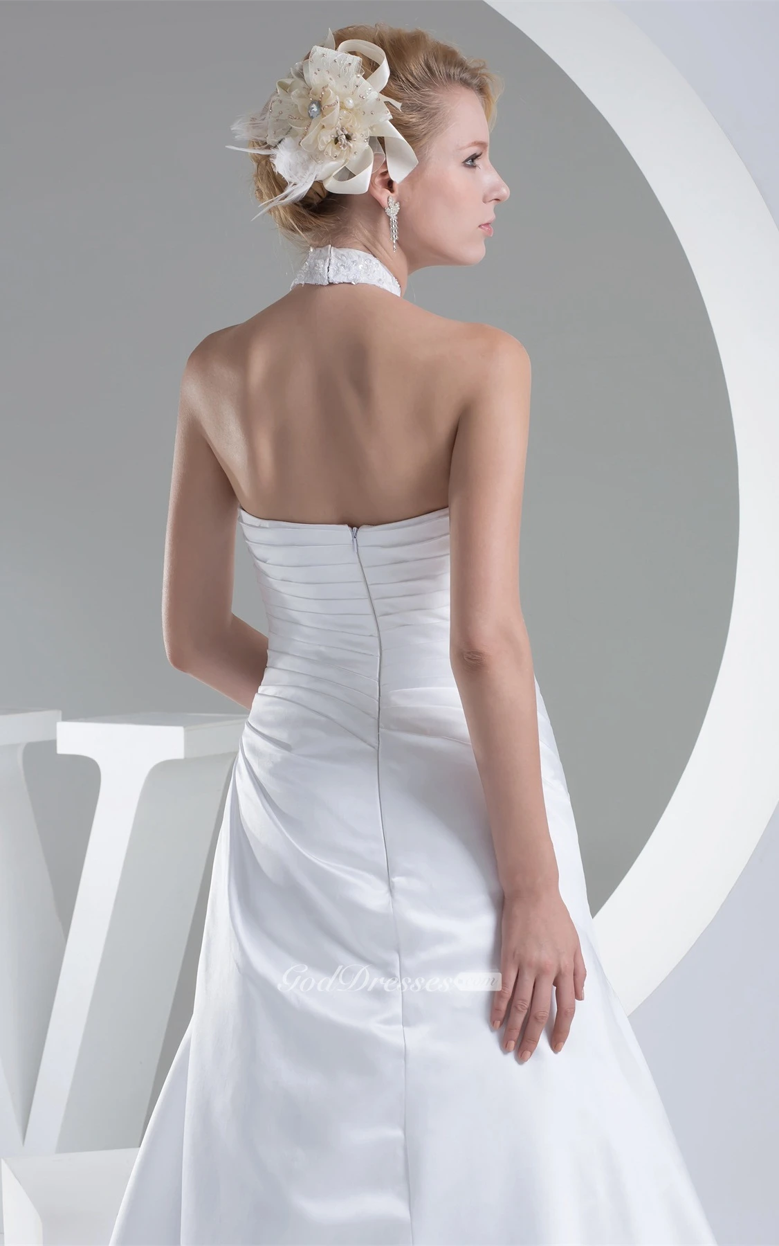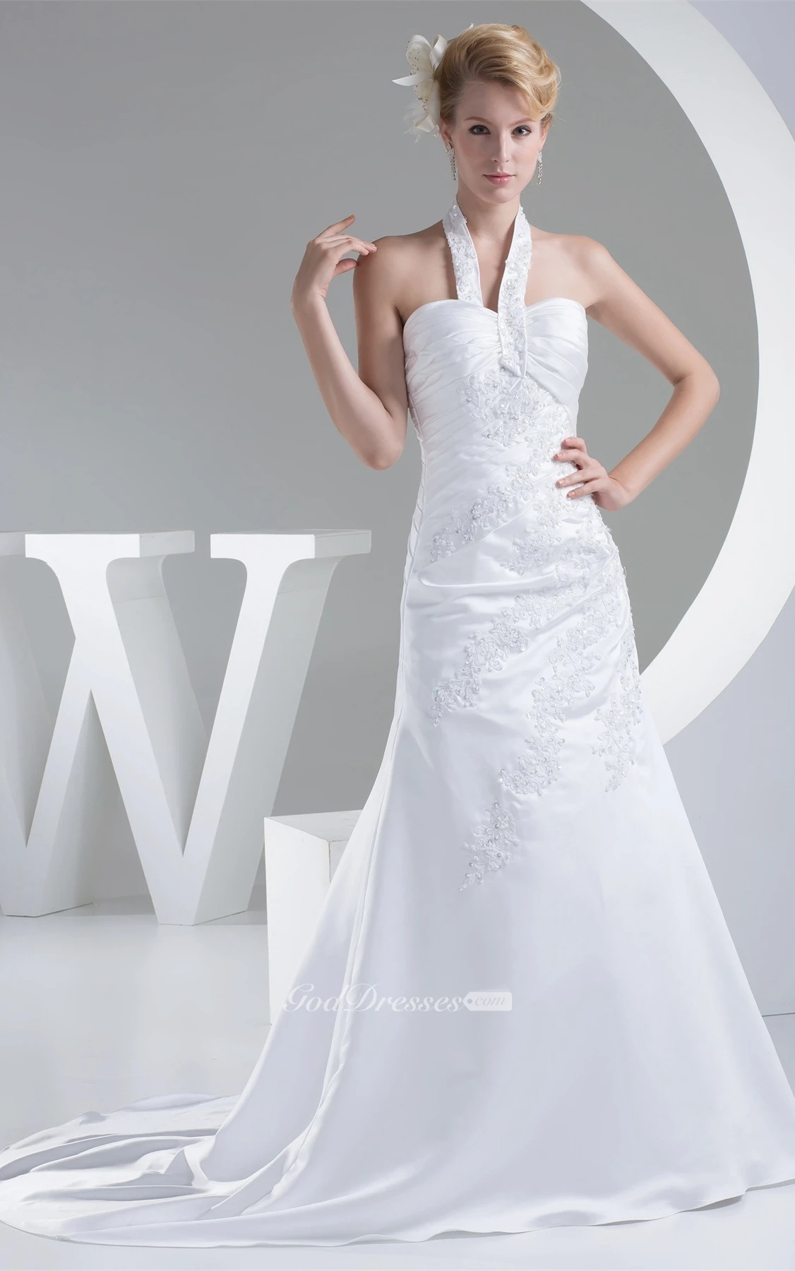 Sleeveless A-Line Criss-Cross Appliques and Gown With Halter