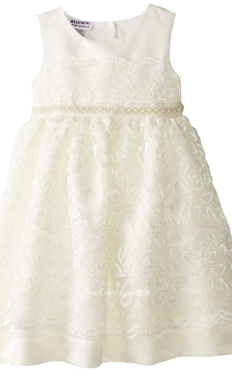 Sleeveless A-line Dress With Beadings and Bow