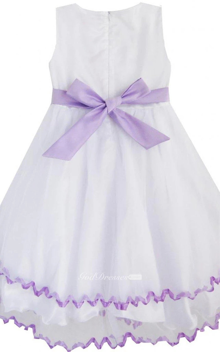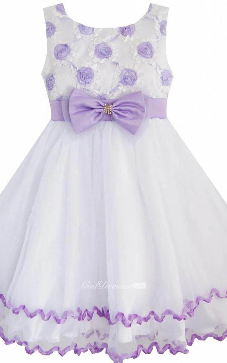 Sleeveless A-line Dress With Bow and Flowers