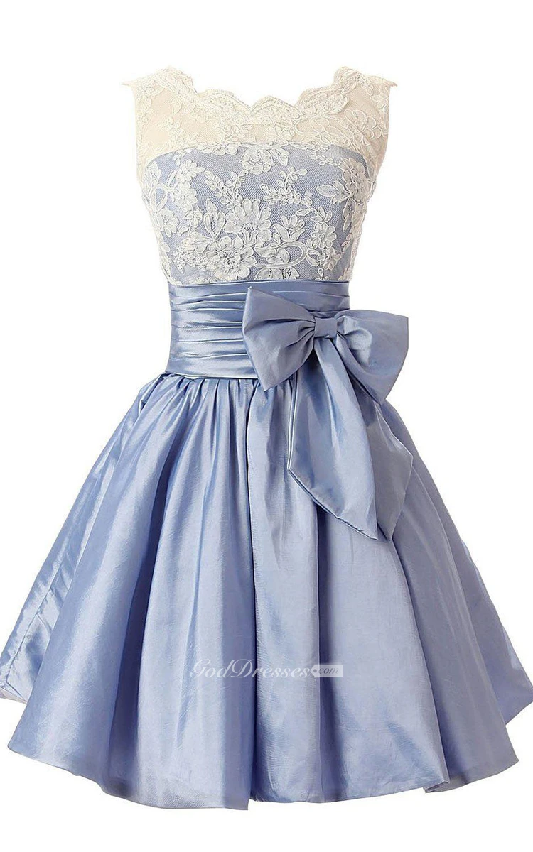 Sleeveless A-line Dress With Bow and Lace Bodice