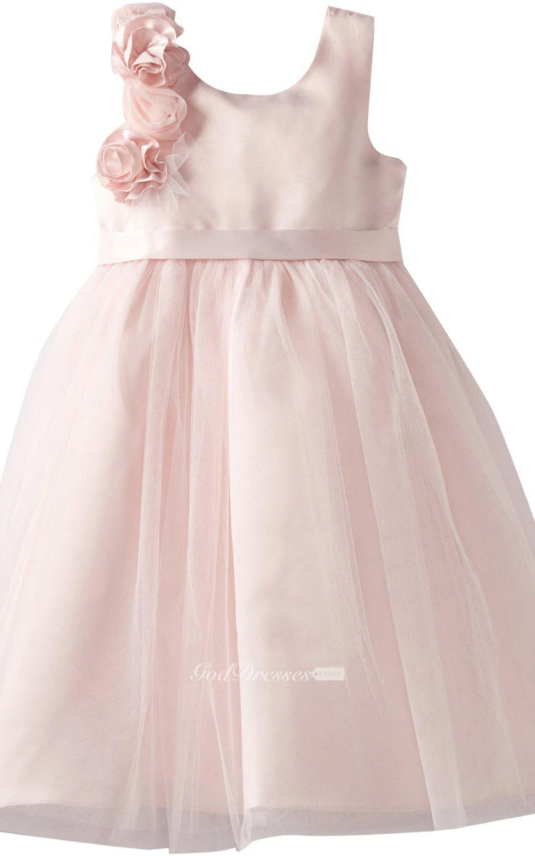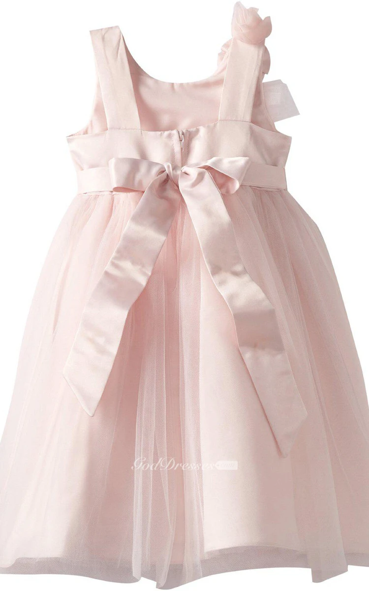 Sleeveless A-line Dress With Floral Shoulder and Bow