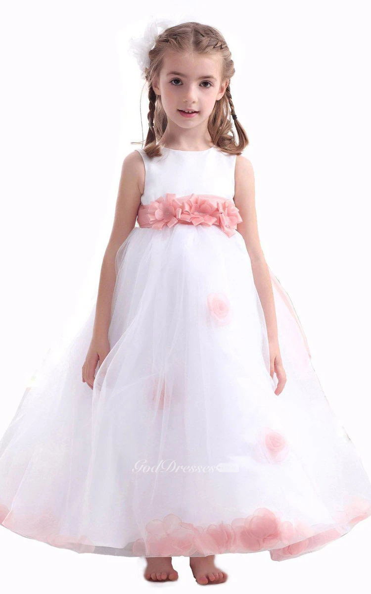 Sleeveless A-line Dress With Flowers and Illusion