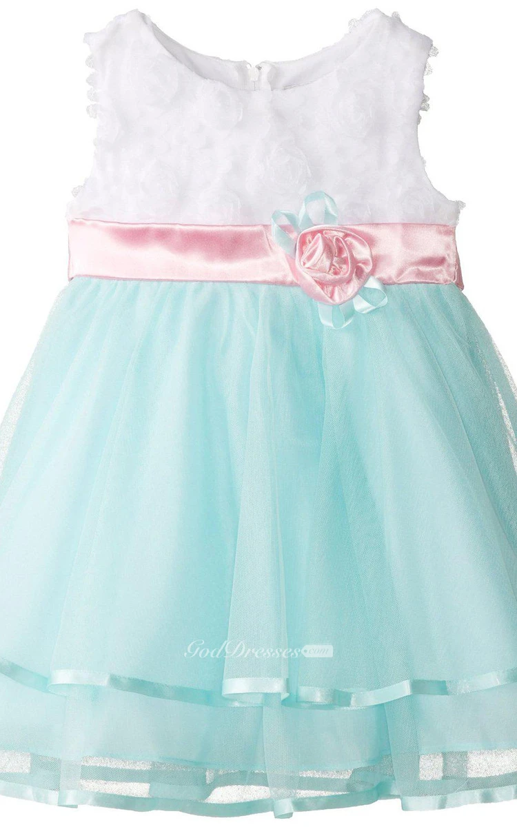 Sleeveless A-line Dress With Flowers and Pleats