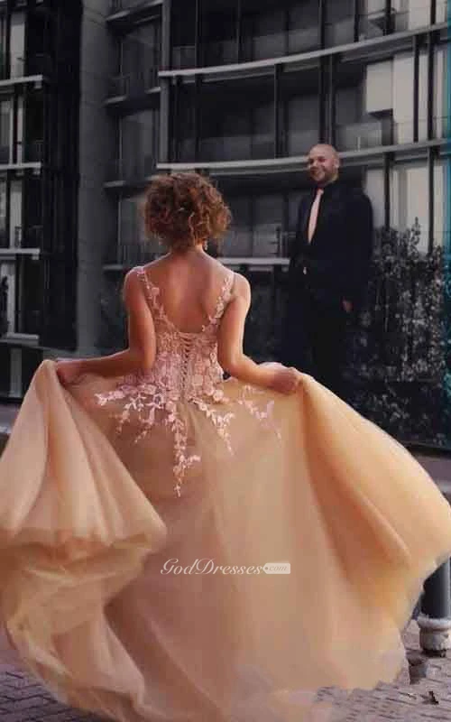 Sleeveless A-line Floor-length Chiffon Dress with Lace