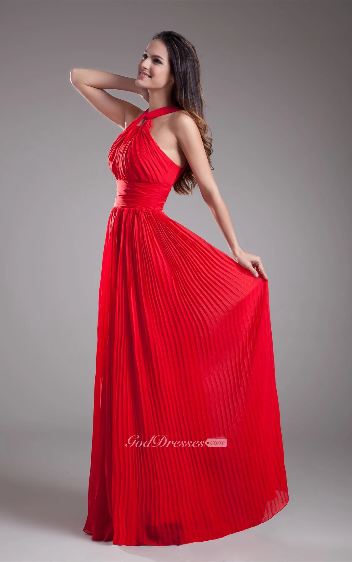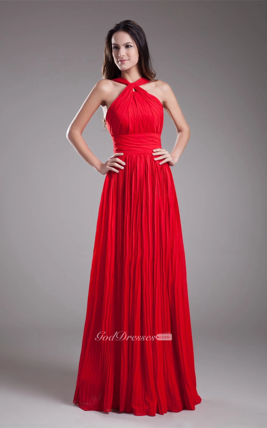 Sleeveless A-Line Floor-Length Ruched Zipper Back and Dress With Pleats