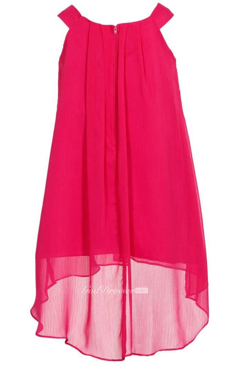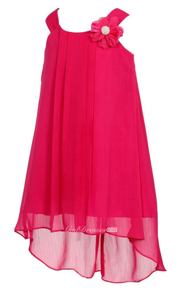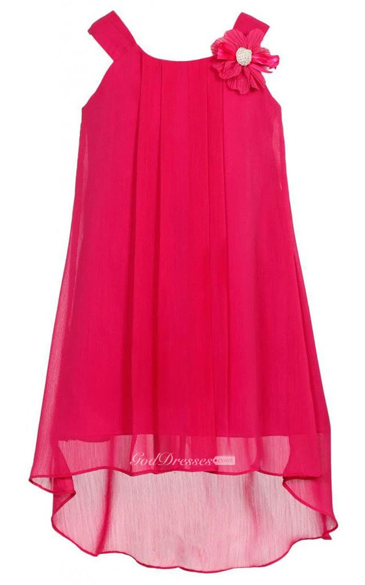 Sleeveless A-line High-low Pleated Dress With Flower and Straps