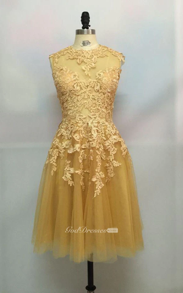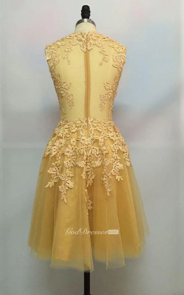 Sleeveless A-line Knee-length High Neck Lace Dress