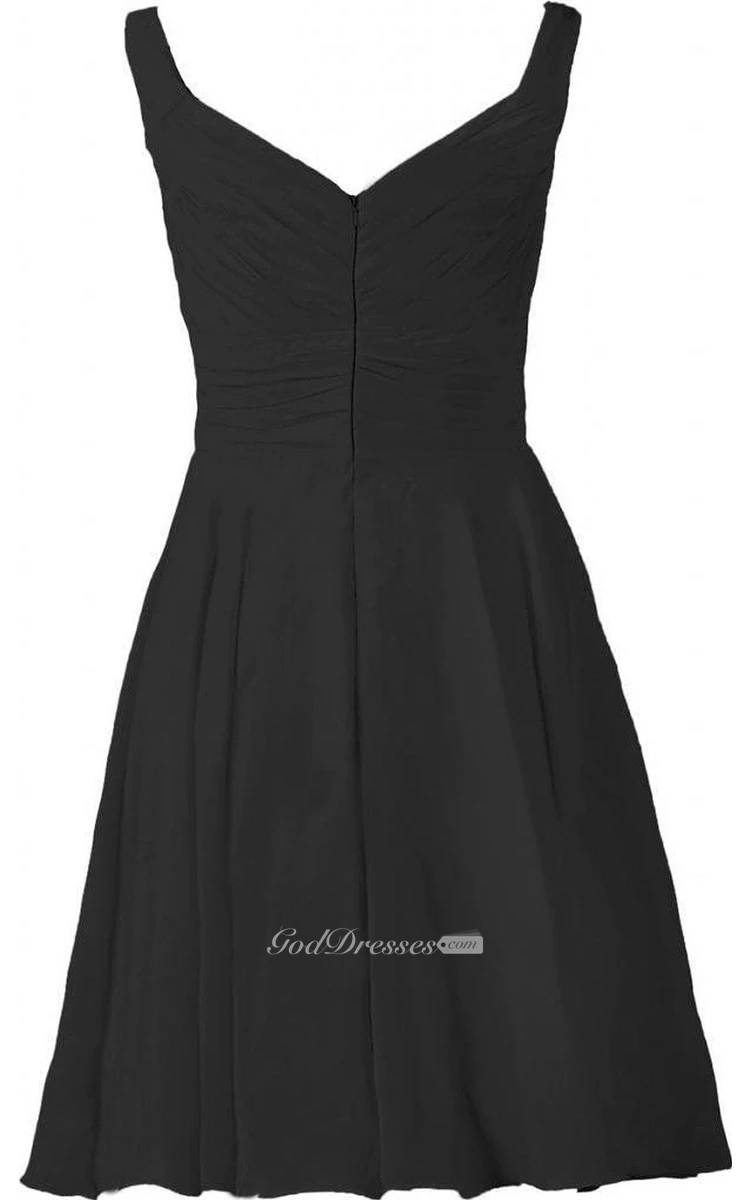 Sleeveless A-line Knee-length Ruched Chiffon Dress