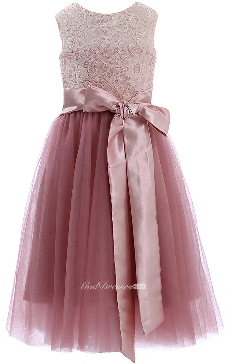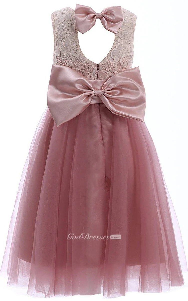 Sleeveless A-line Lace Dress With Bows and Key-hole Back