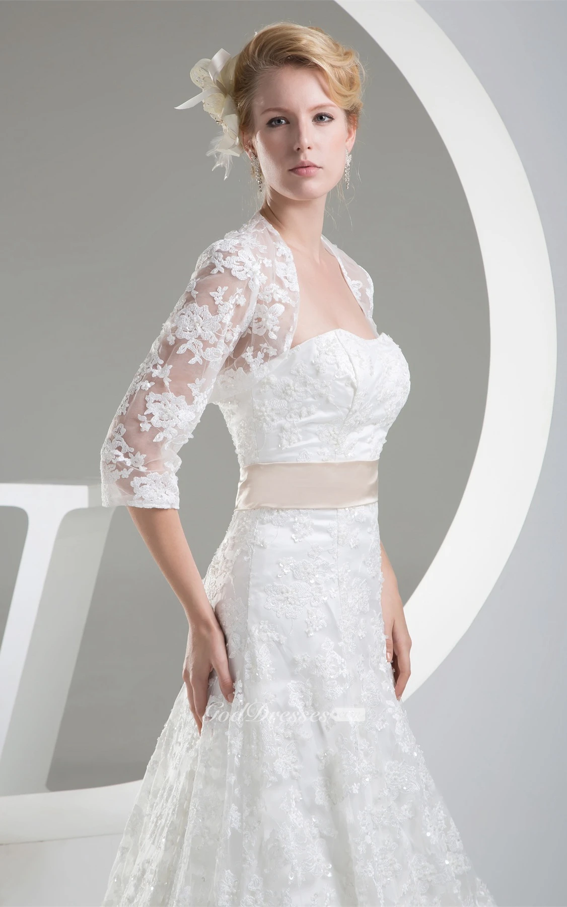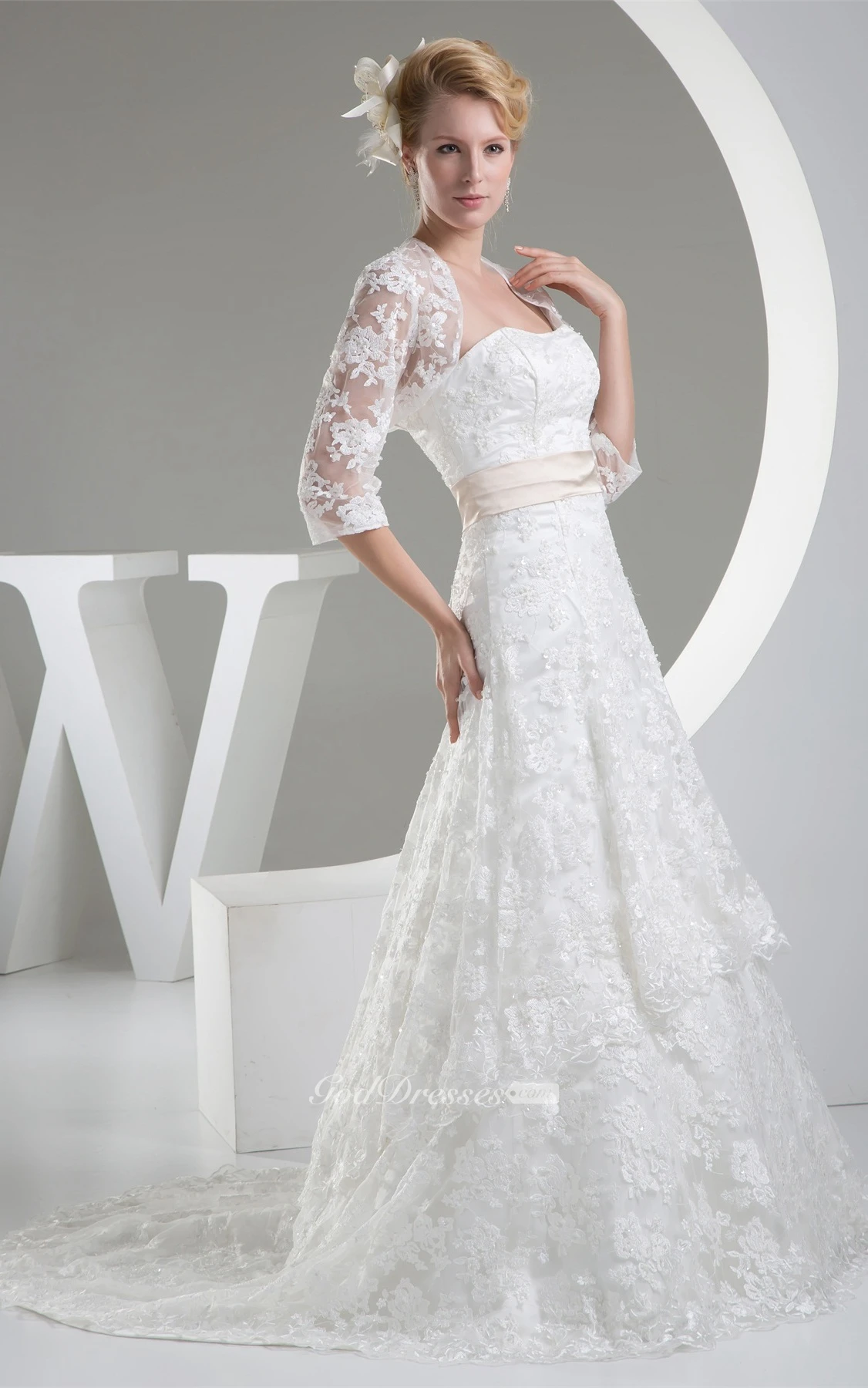 Sleeveless A-Line Lace Sweep Train and Dress With Bolero