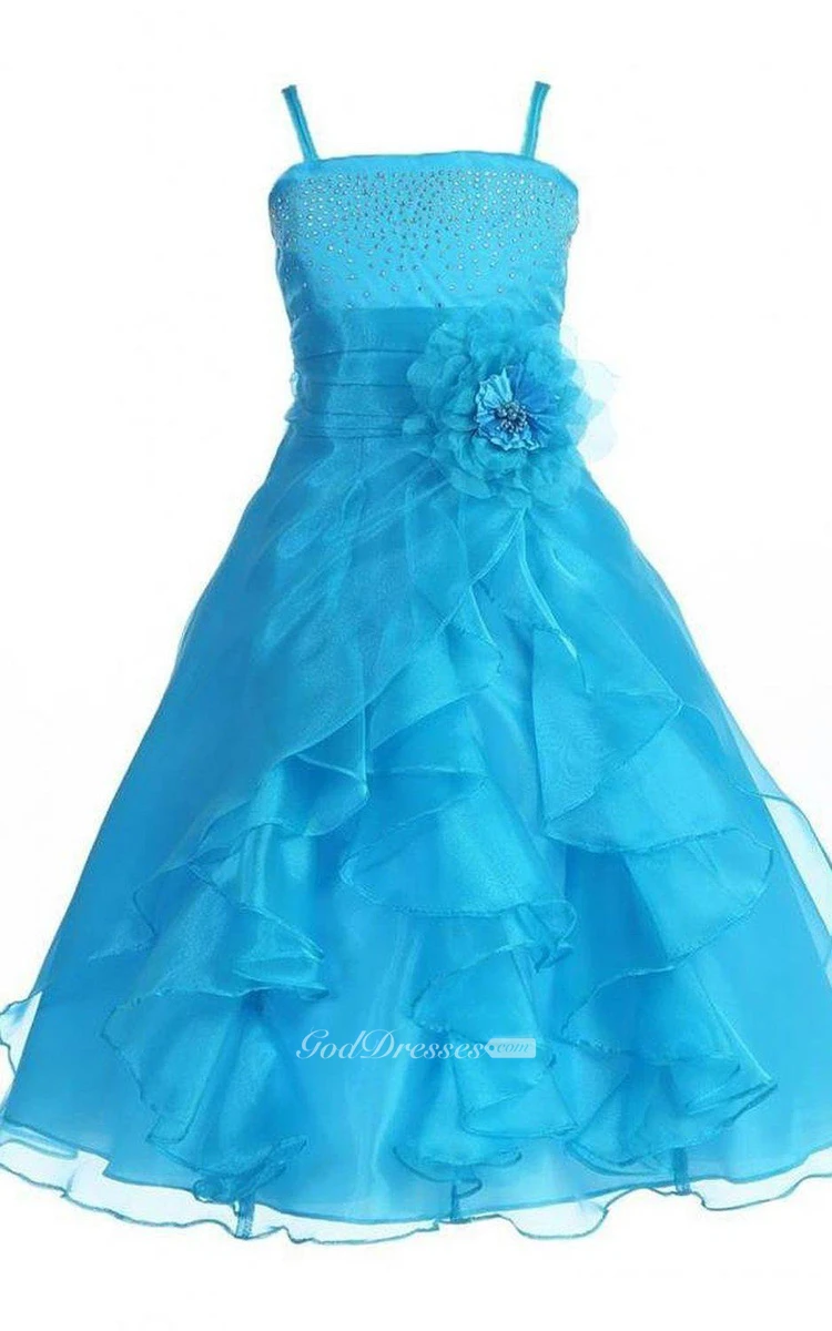 Sleeveless A-line Organza Dress With Sequins and Flower