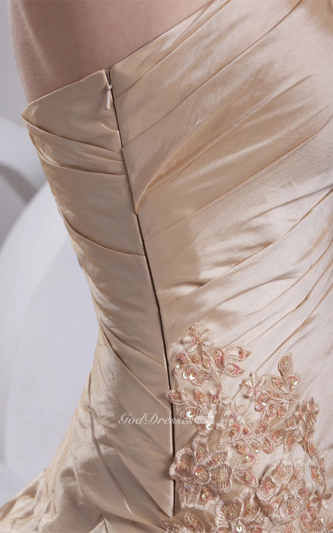 Sleeveless A-Line Pleated Appliques and Gown With Ruching
