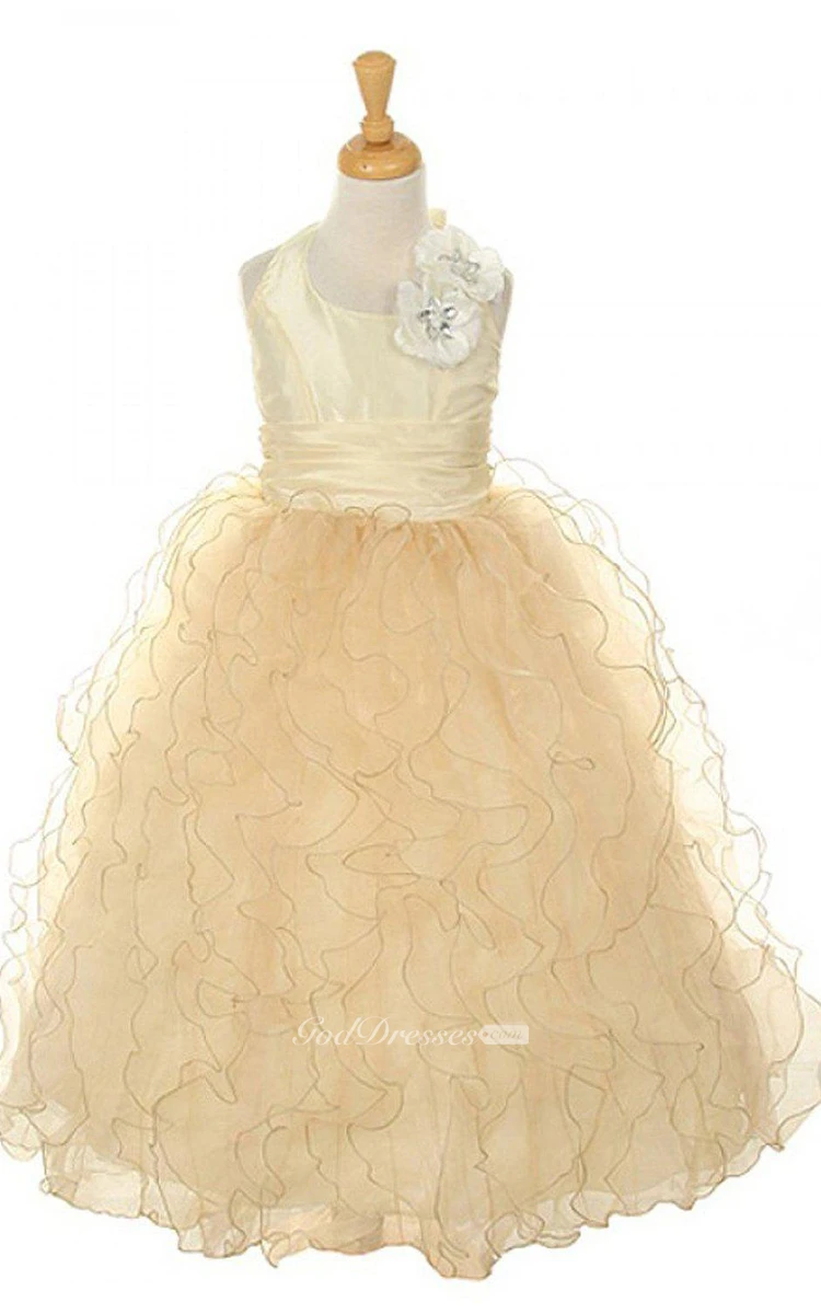 Sleeveless A-line Pleated Dress With Cascade Ruffles