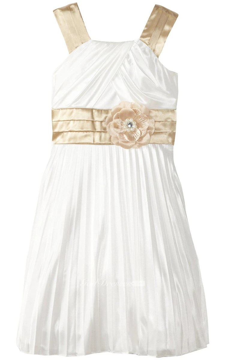 Sleeveless A-line Pleated Dress With Criss Cross