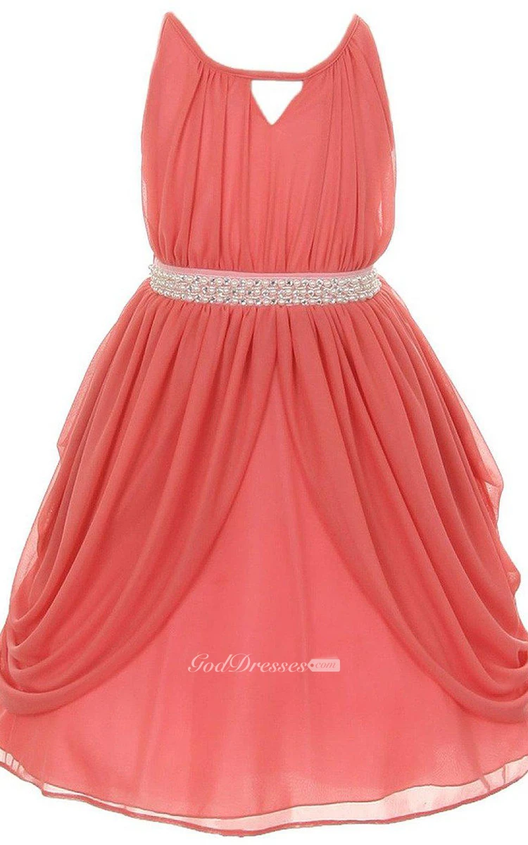 Sleeveless A-line Pleated Dress With Key-hole Neck