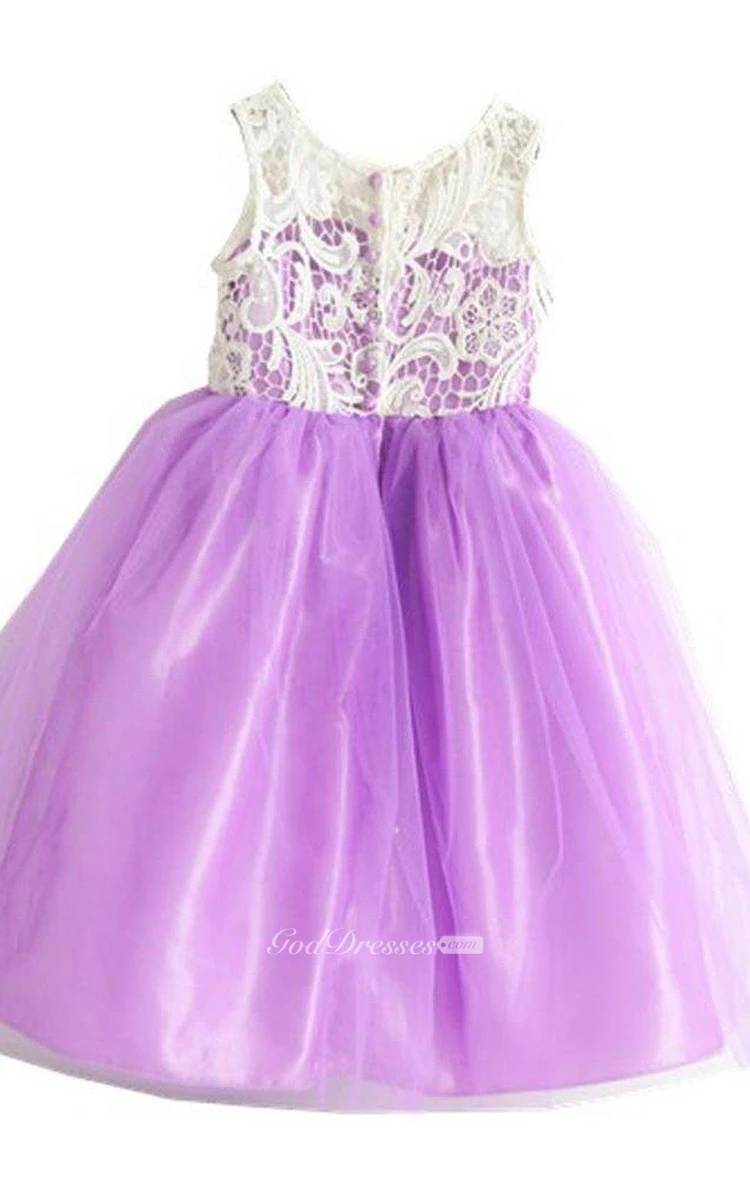 Sleeveless A-line Pleated Dress With Lace Bodice