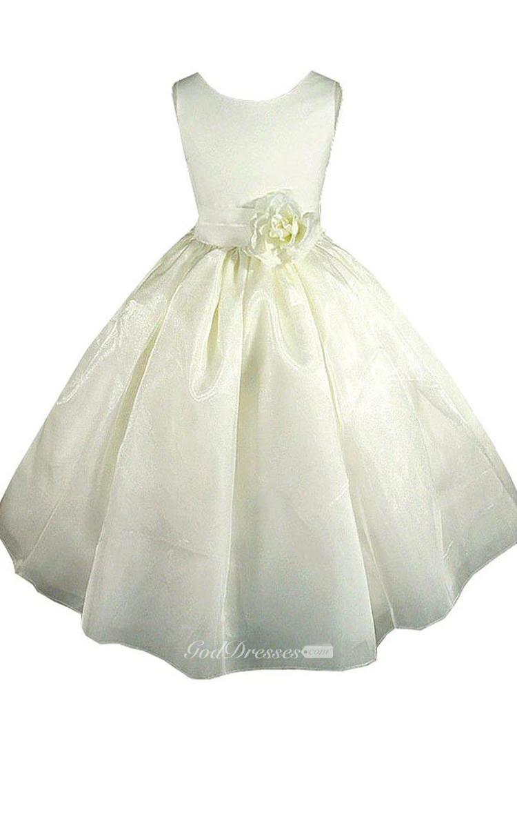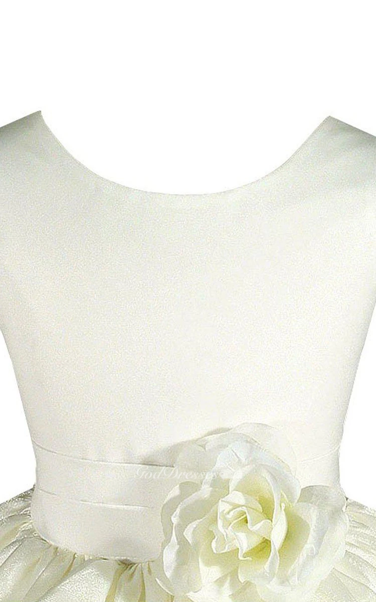 Sleeveless A-line Ruched Dress With Flower and Bow