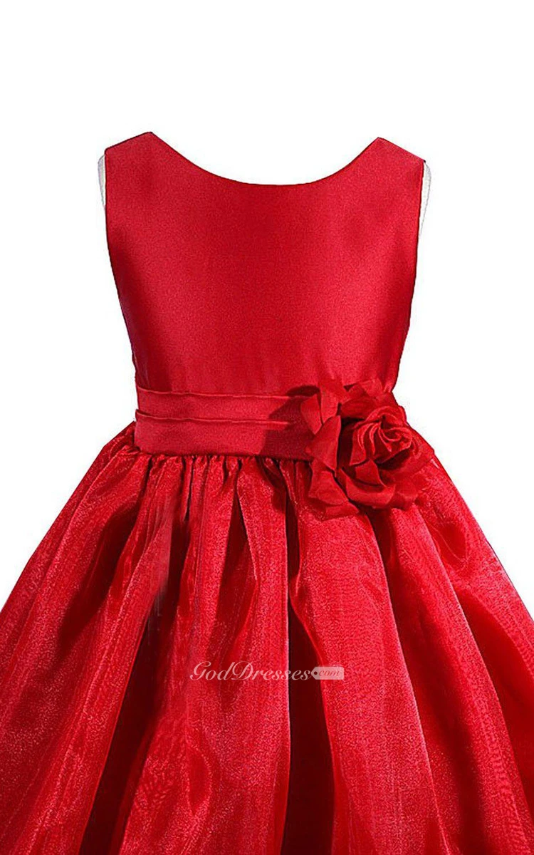 Sleeveless A-line Ruched Dress With Flower and Bow