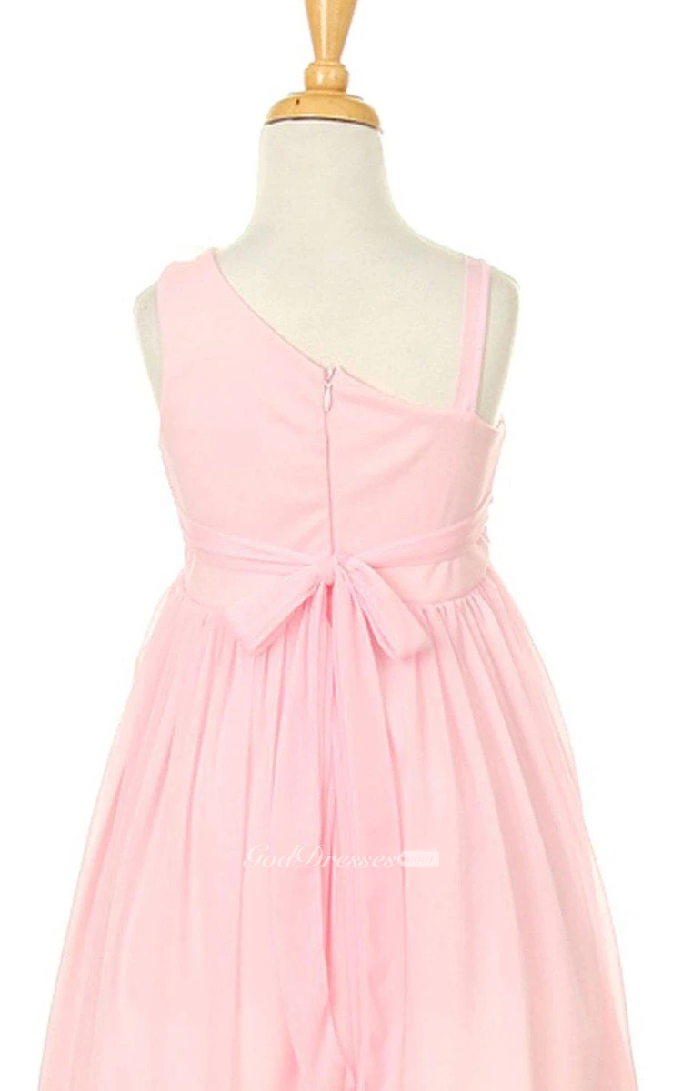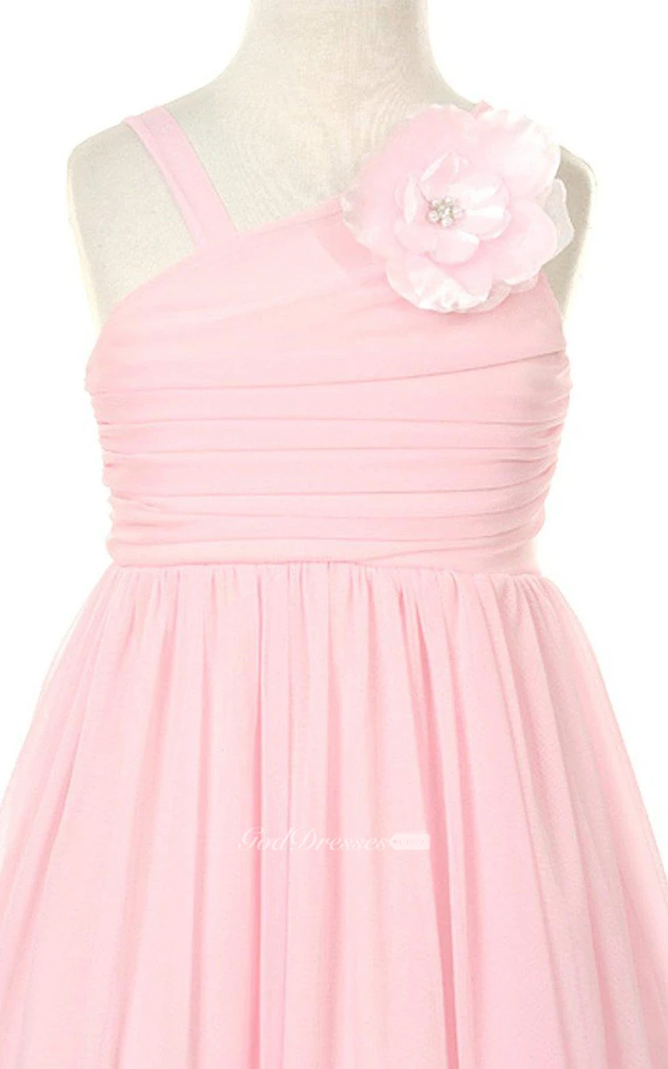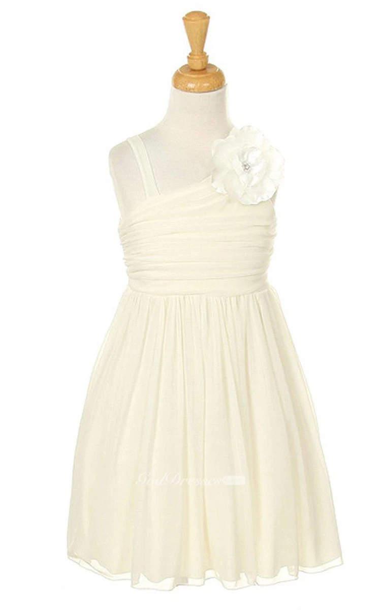 Sleeveless A-line Ruched Dress With Flower
