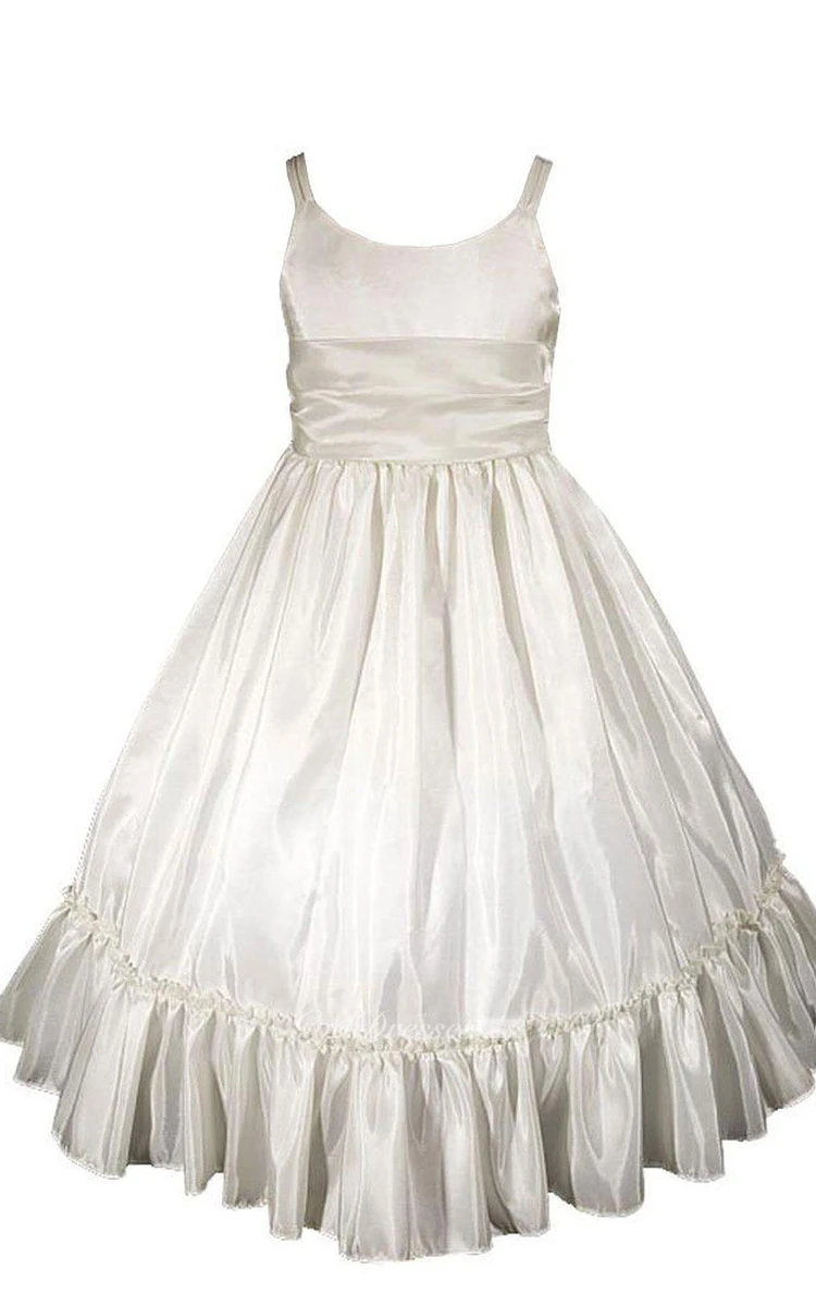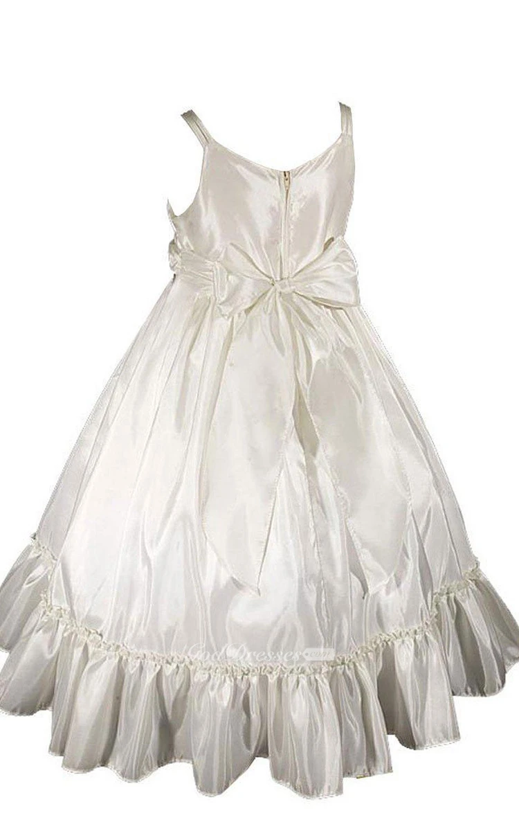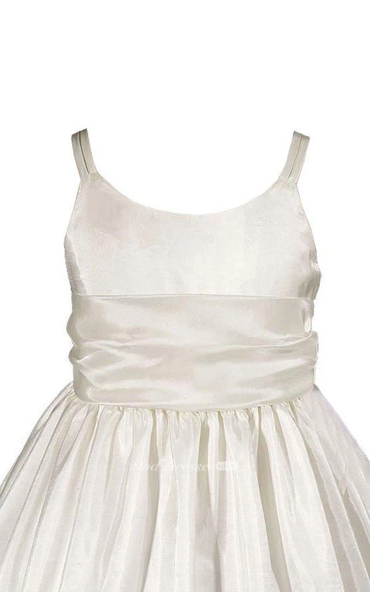 Sleeveless A-line Ruched Dress With Straps and Bow