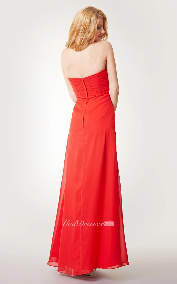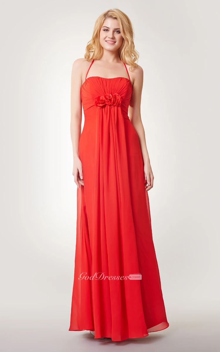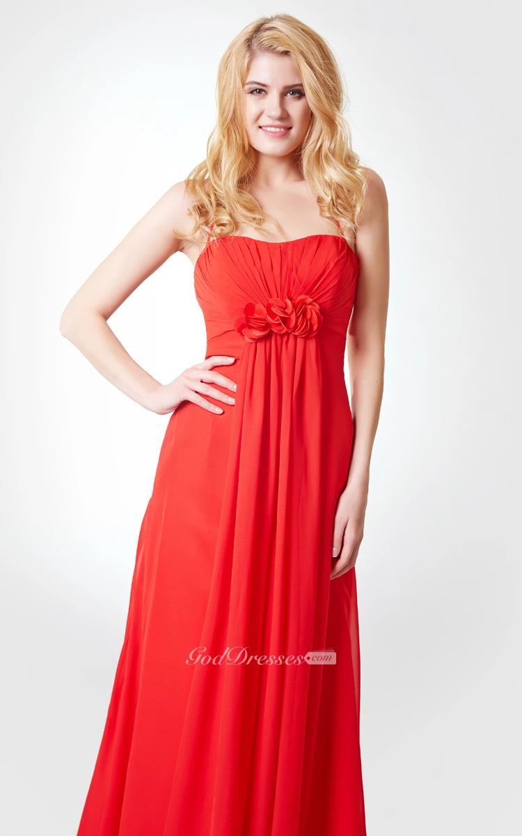 Sleeveless A-line Ruched Long Chiffon Dress With Flower
