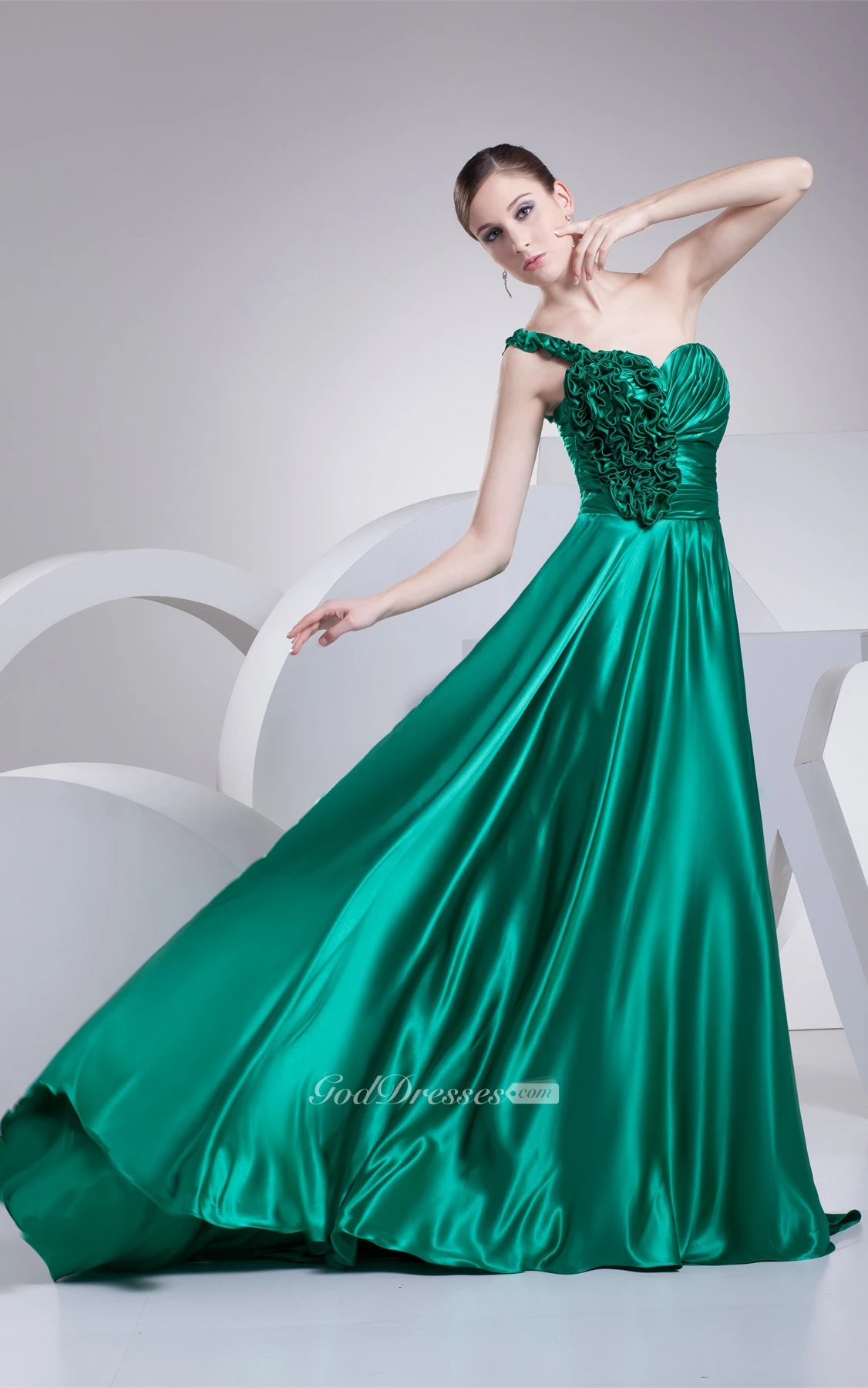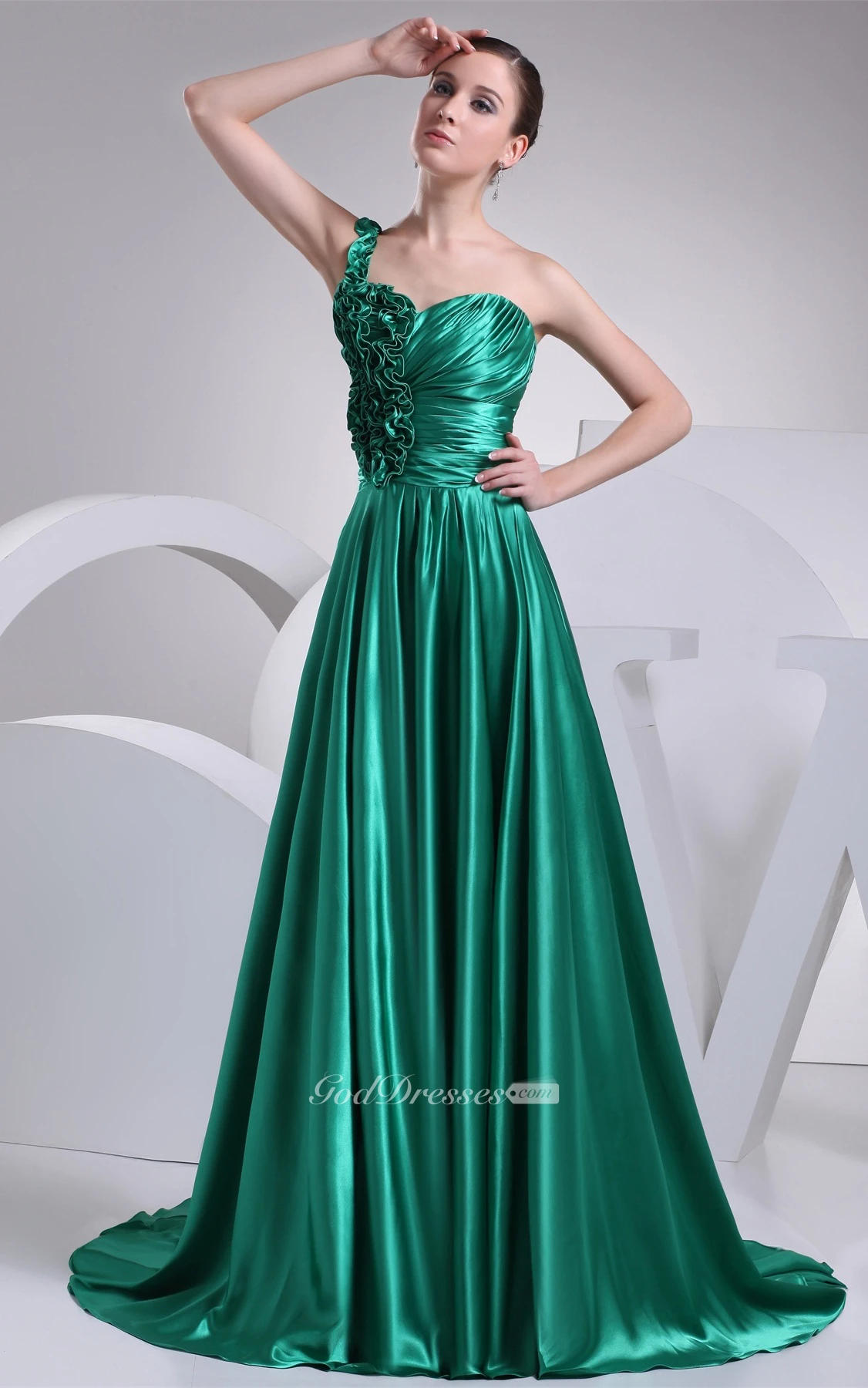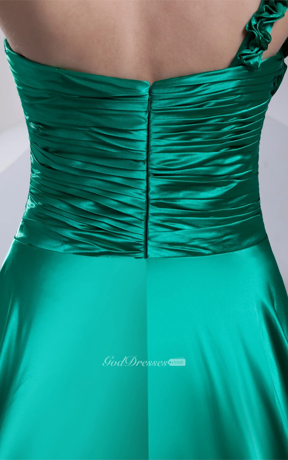 Sleeveless A-Line Ruffled Brush Train and Gown With Pleats