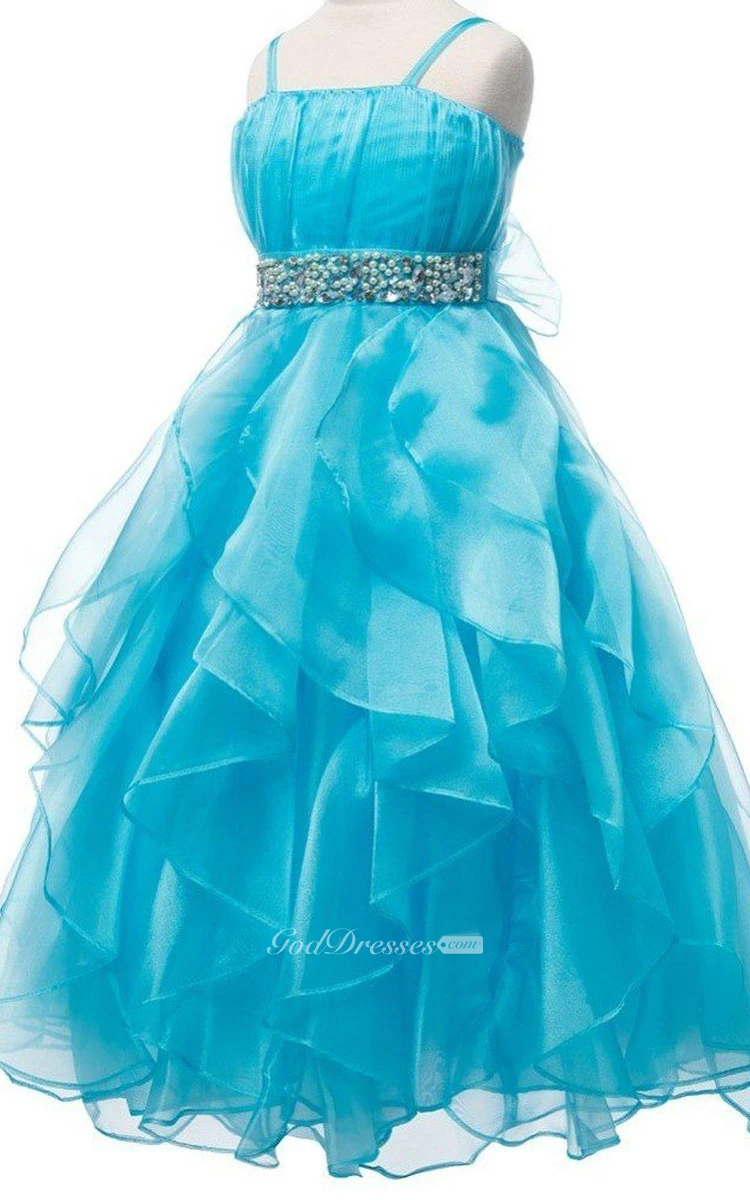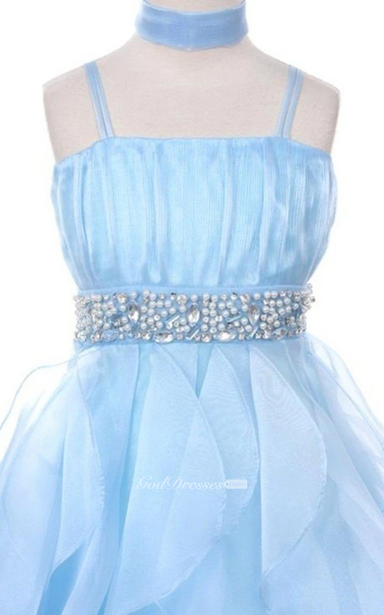 Sleeveless A-line Ruffled Dress With Beadings