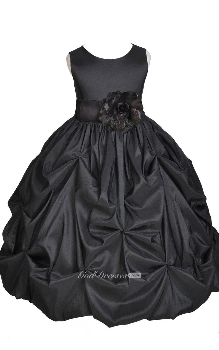 Sleeveless A-line Ruffled Dress With Flower and Bow