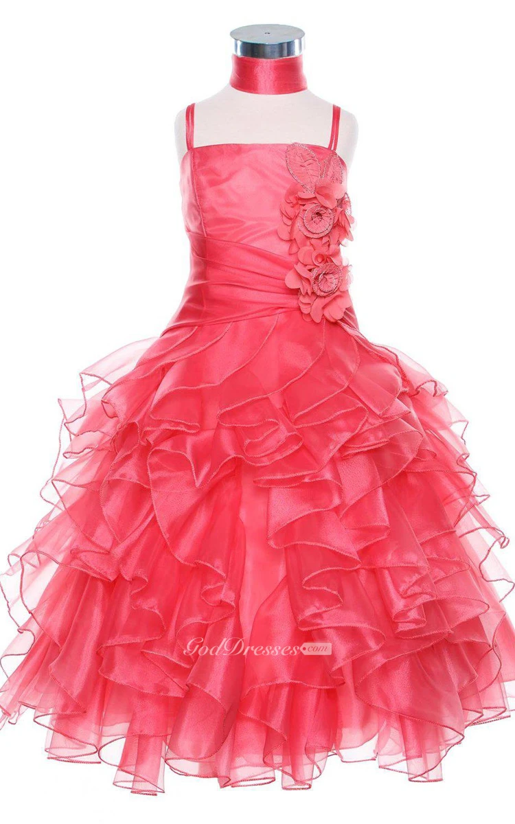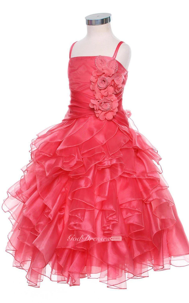 Sleeveless A-line Ruffled Dress With Spaghetti Straps