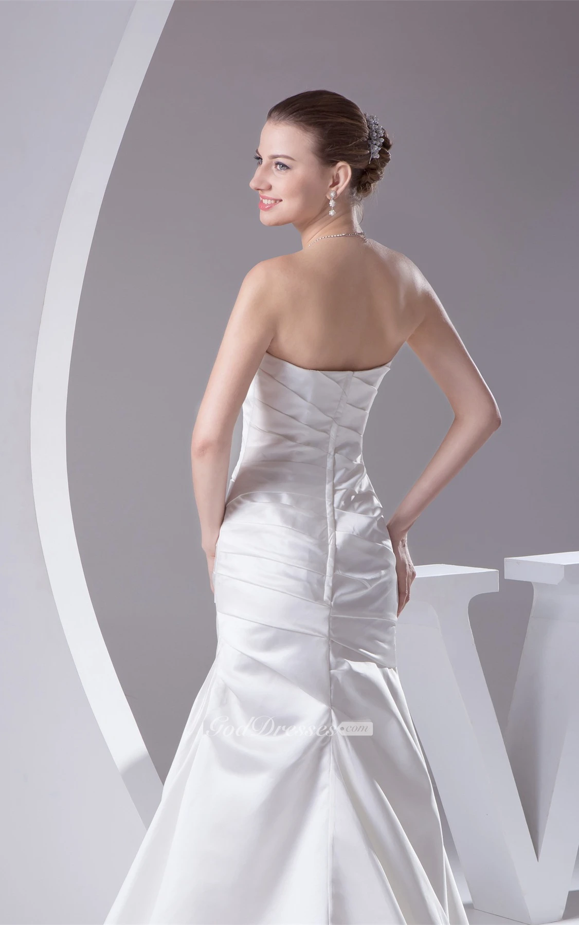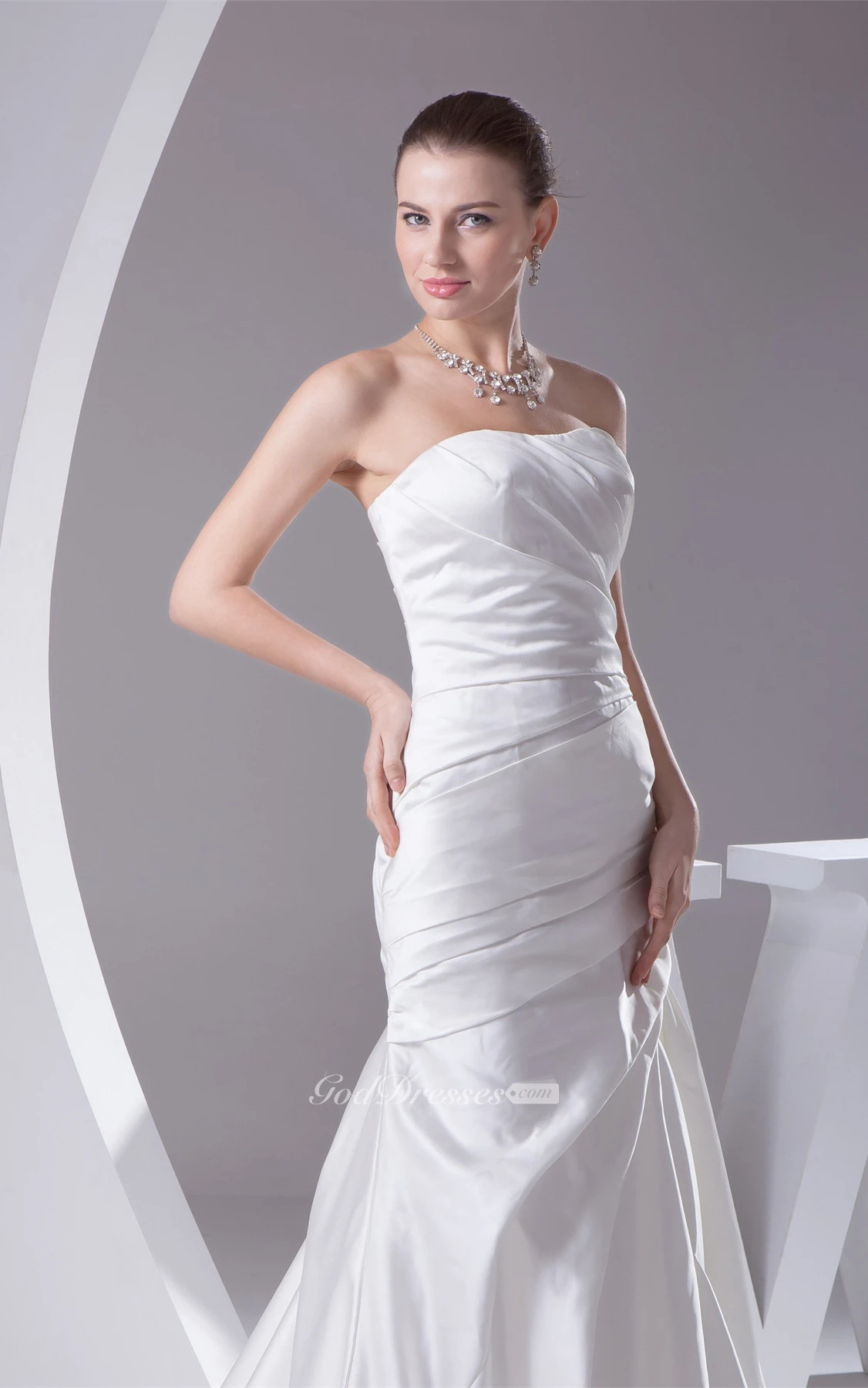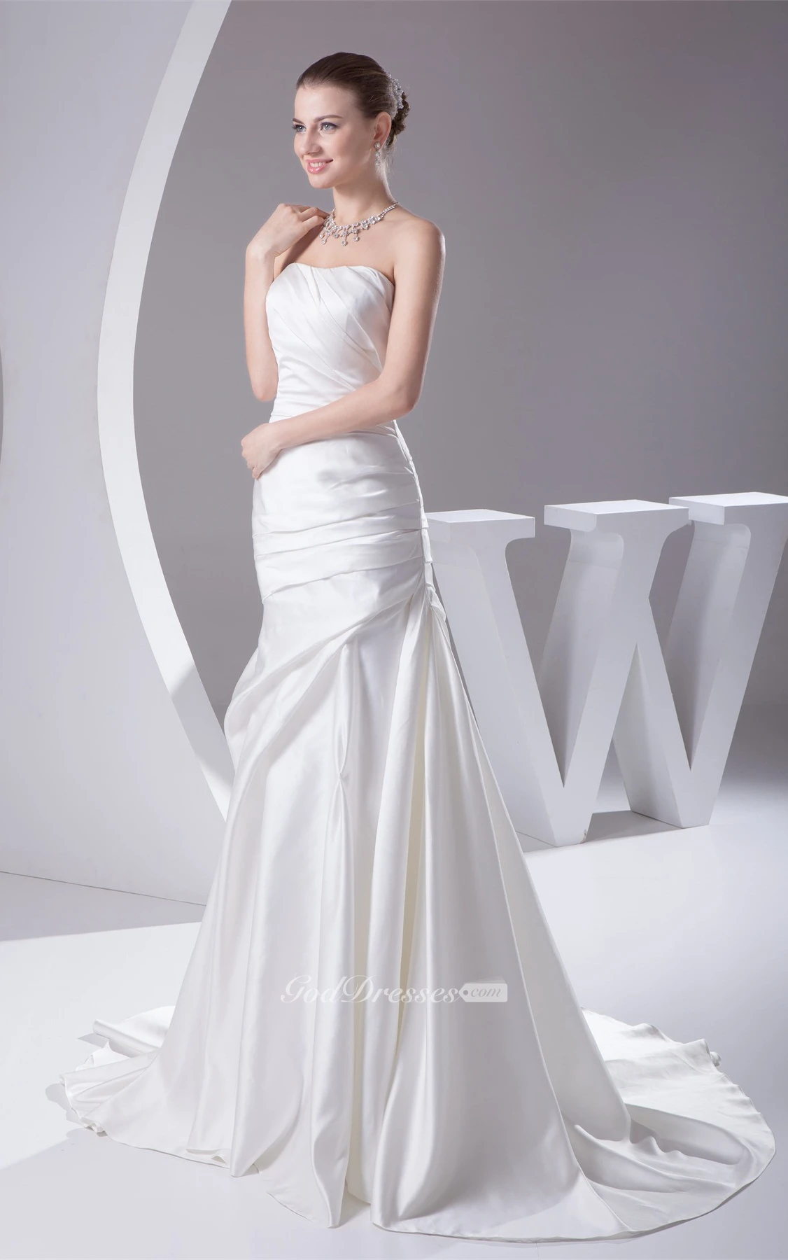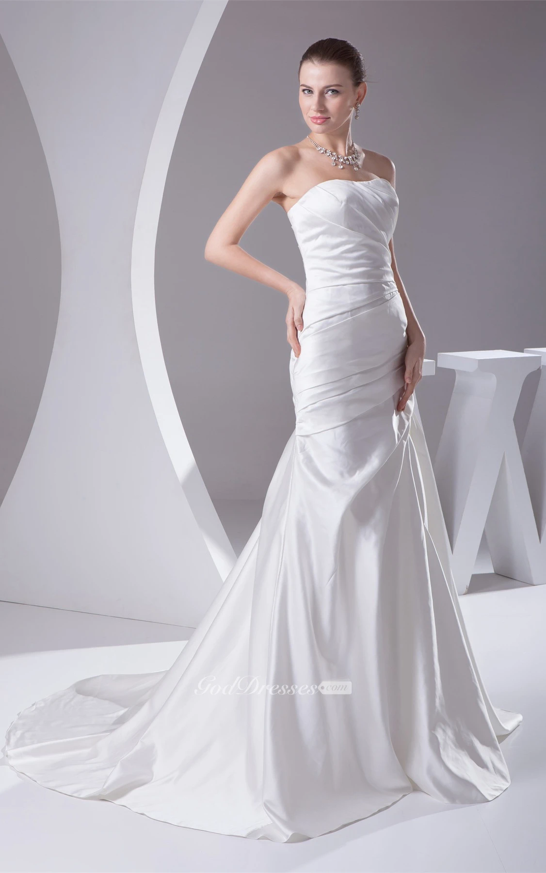 Sleeveless A-Line Satin Court Train and Gown With Side Ruching