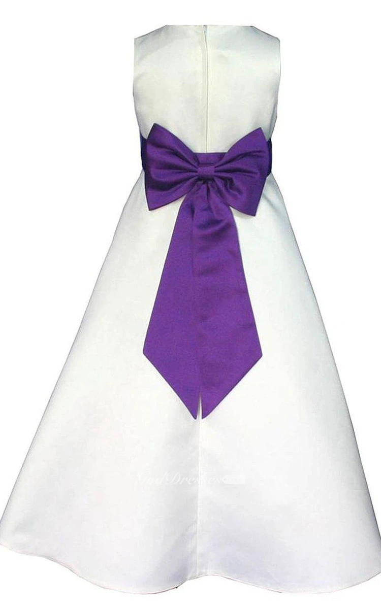 Sleeveless A-line Satin Dress With Beadings and Bow