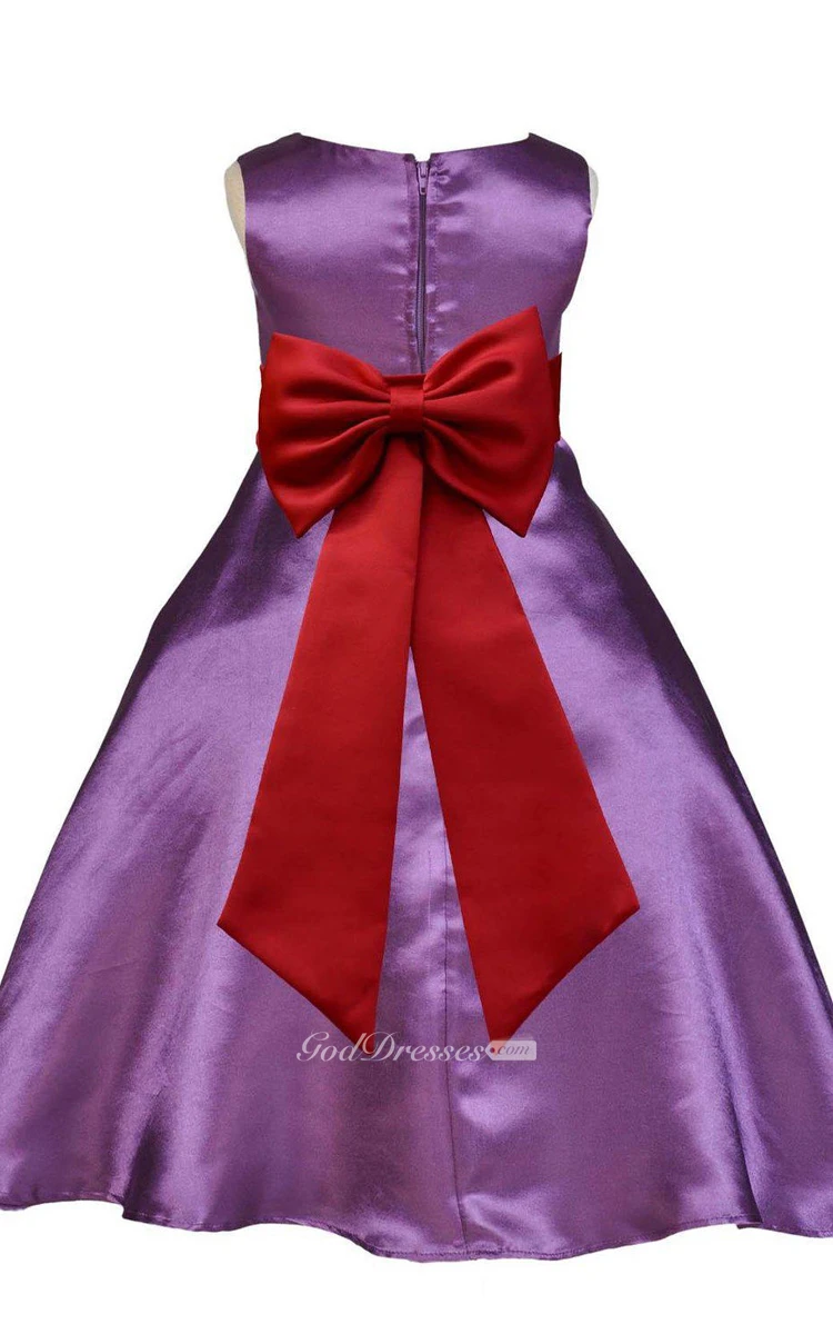 Sleeveless A-line Satin Dress With Floral Waist