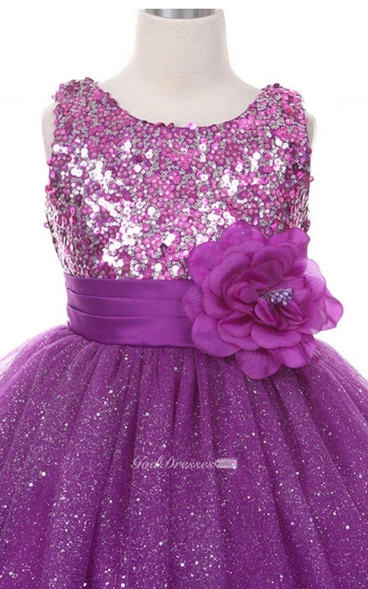 Sleeveless A-line Sequined Dress With Flower and Bow