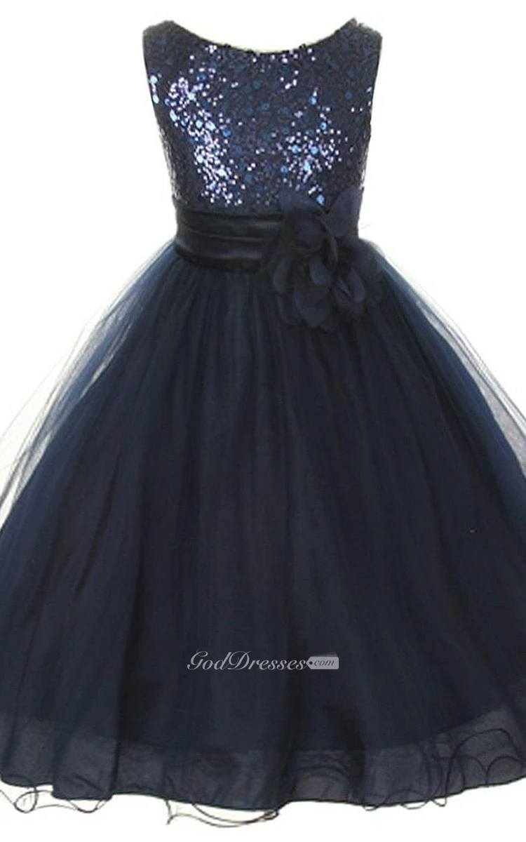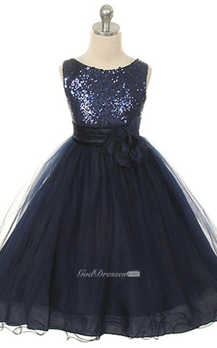 Sleeveless A-line Sequined Dress With Flower and Pleats