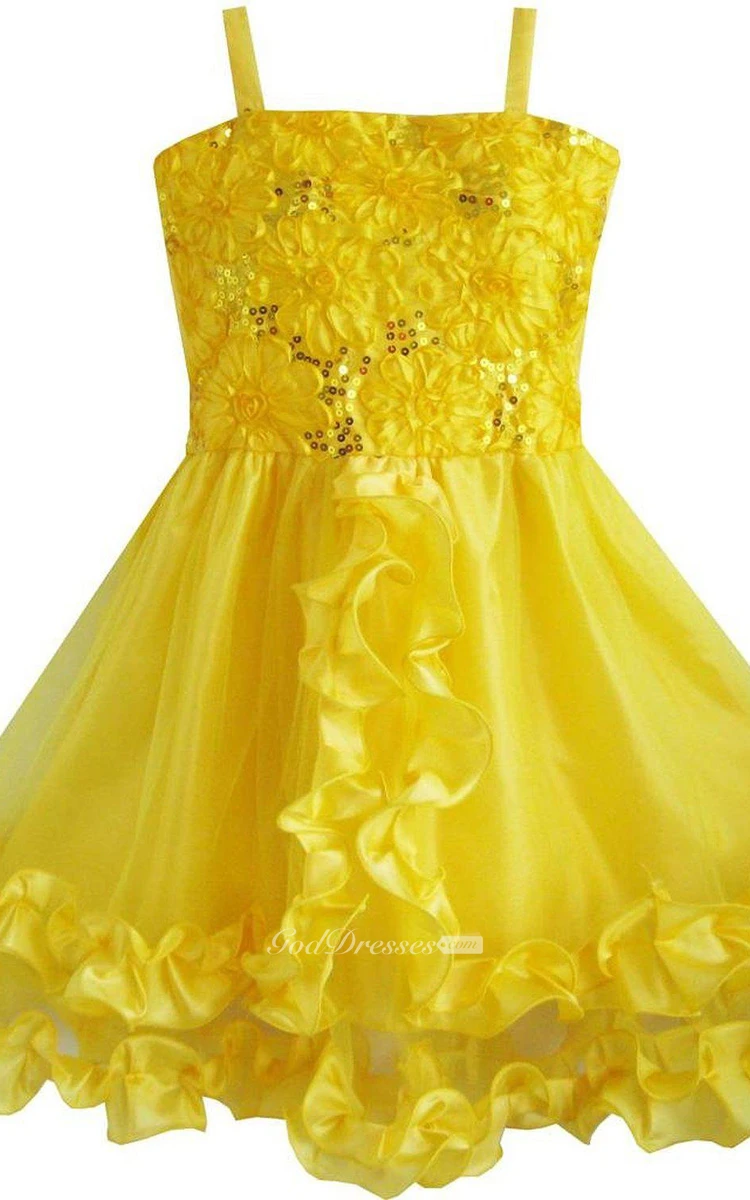 Sleeveless A-line Sequined Dress With Ruffles and Bow
