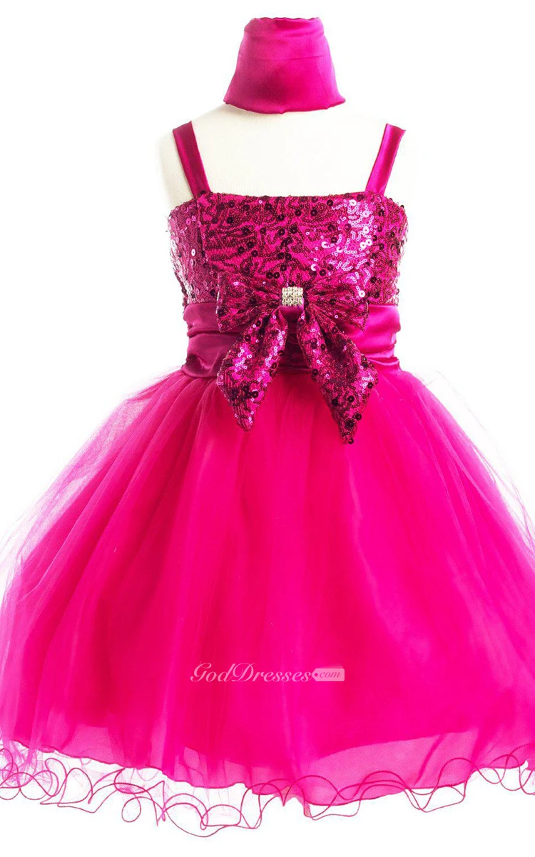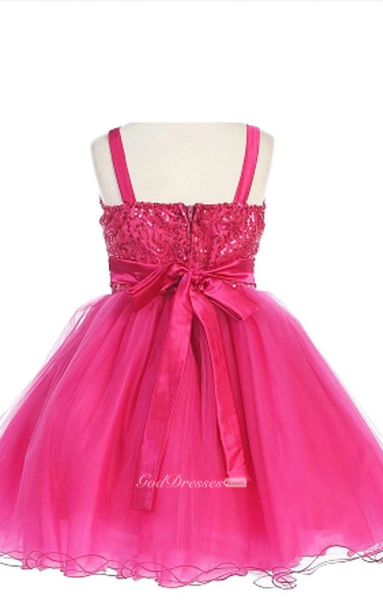 Sleeveless A-line Sequined Dress With Straps and Bows