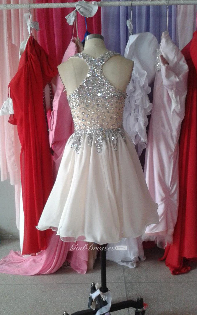 Sleeveless A-line Short Chiffon Dress With Crystal Detailing